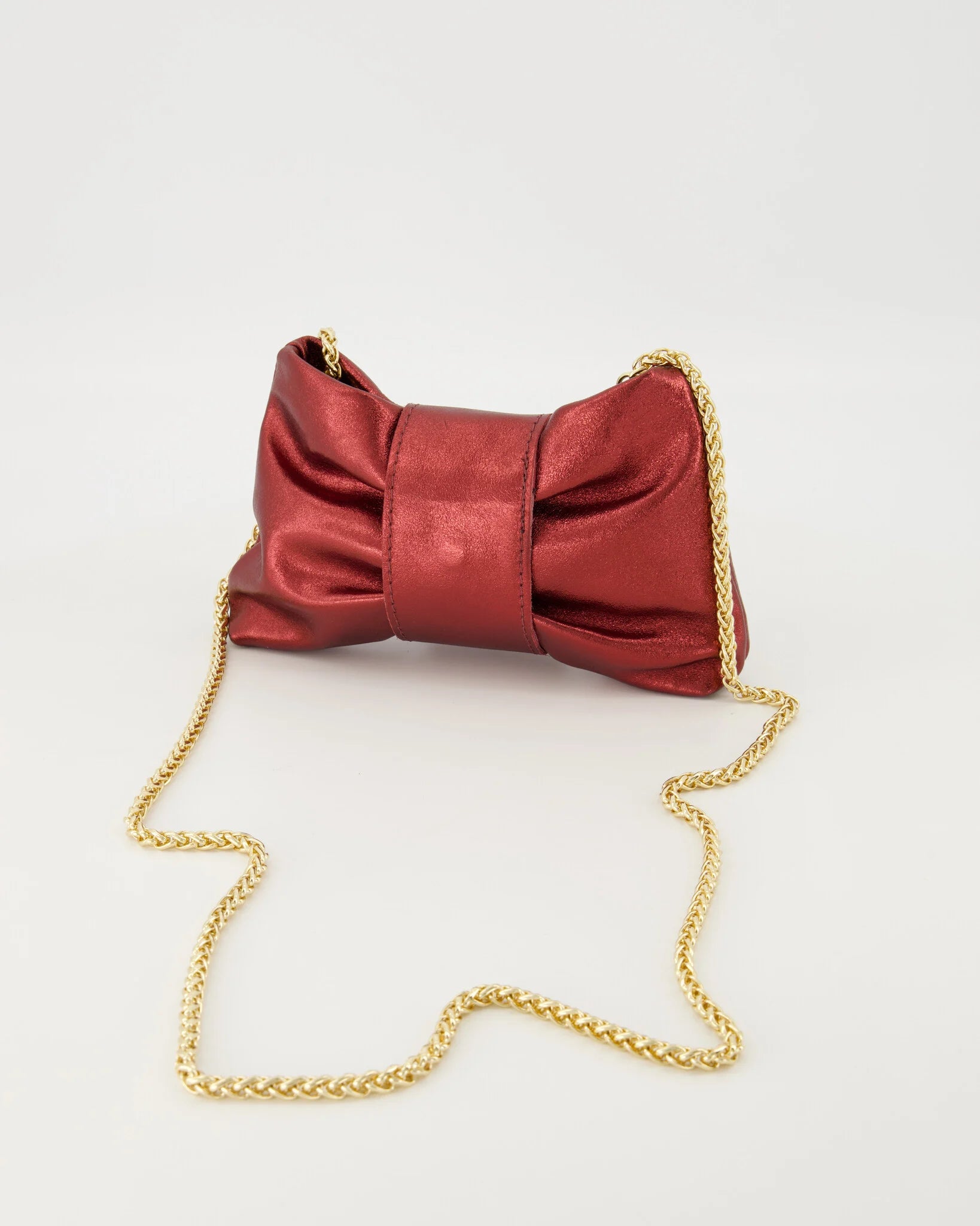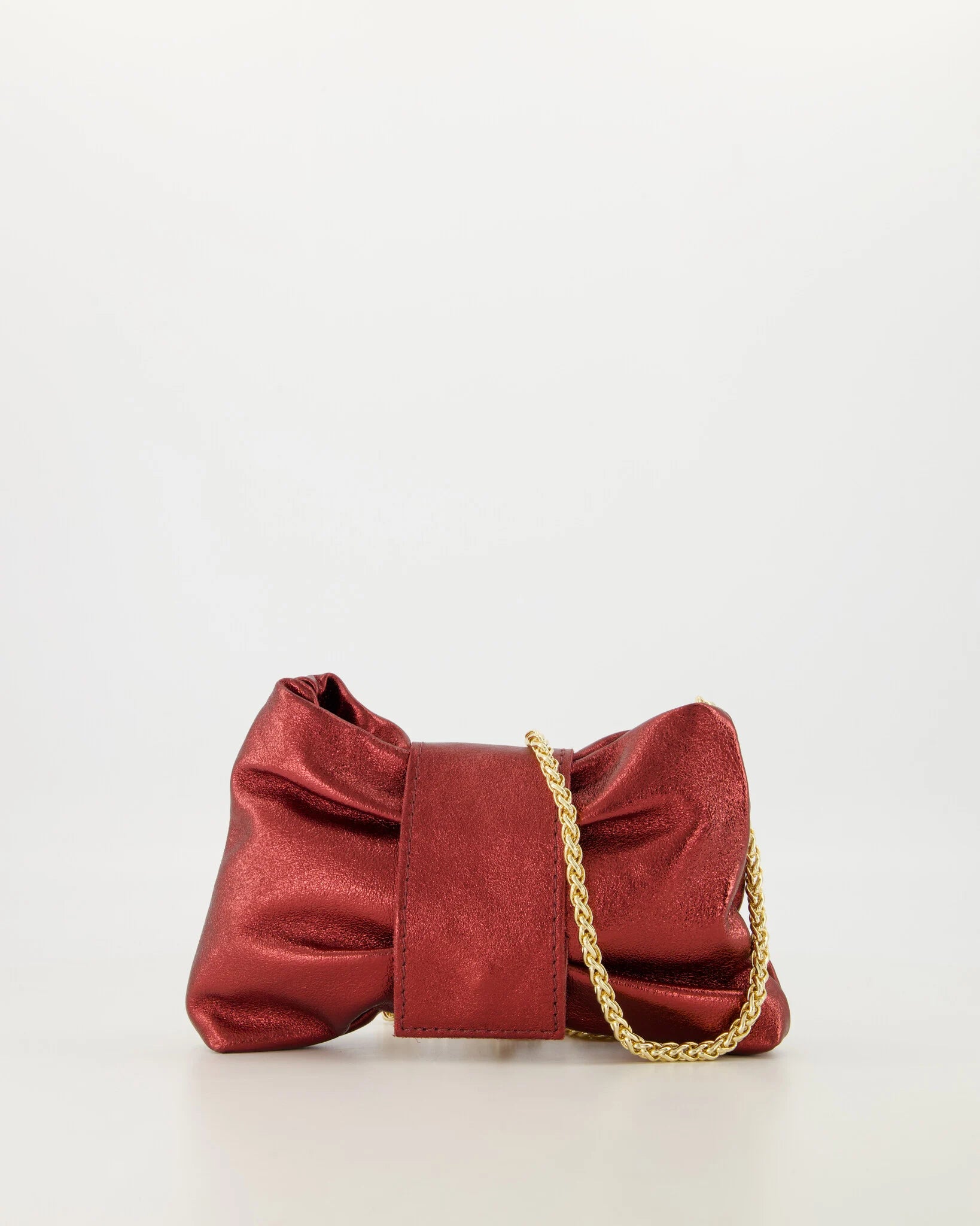 Ontdek de sprankelende charme van onze Bowi Bow bag in metallic leer! Deze tas is een perfecte mix van elegantie en speelsheid, met een subtiele glans die elke outfit een glamoureus tintje geeft. Het metallic leer voegt een vleugje moderniteit toe, terwijl de karakteristieke strikdetail de tas een speelse en vrouwelijke uitstraling geeft. De Bowi Bow bag is niet alleen een stijlvolle accessoire, maar ook functioneel met voldoende ruimte voor al je dagelijkse benodigdheden. Of je nu naar kantoor gaat, een avondje uit plant, of gewoon een vleugje luxe aan je dag wilt toevoegen, deze tas is de perfecte metgezel. Laat jezelf stralen met de Bowi Bow bag in metallic leer - een must-have voor elke moderne en fashion-forward vrouw. Ontdek de schittering vandaag nog!