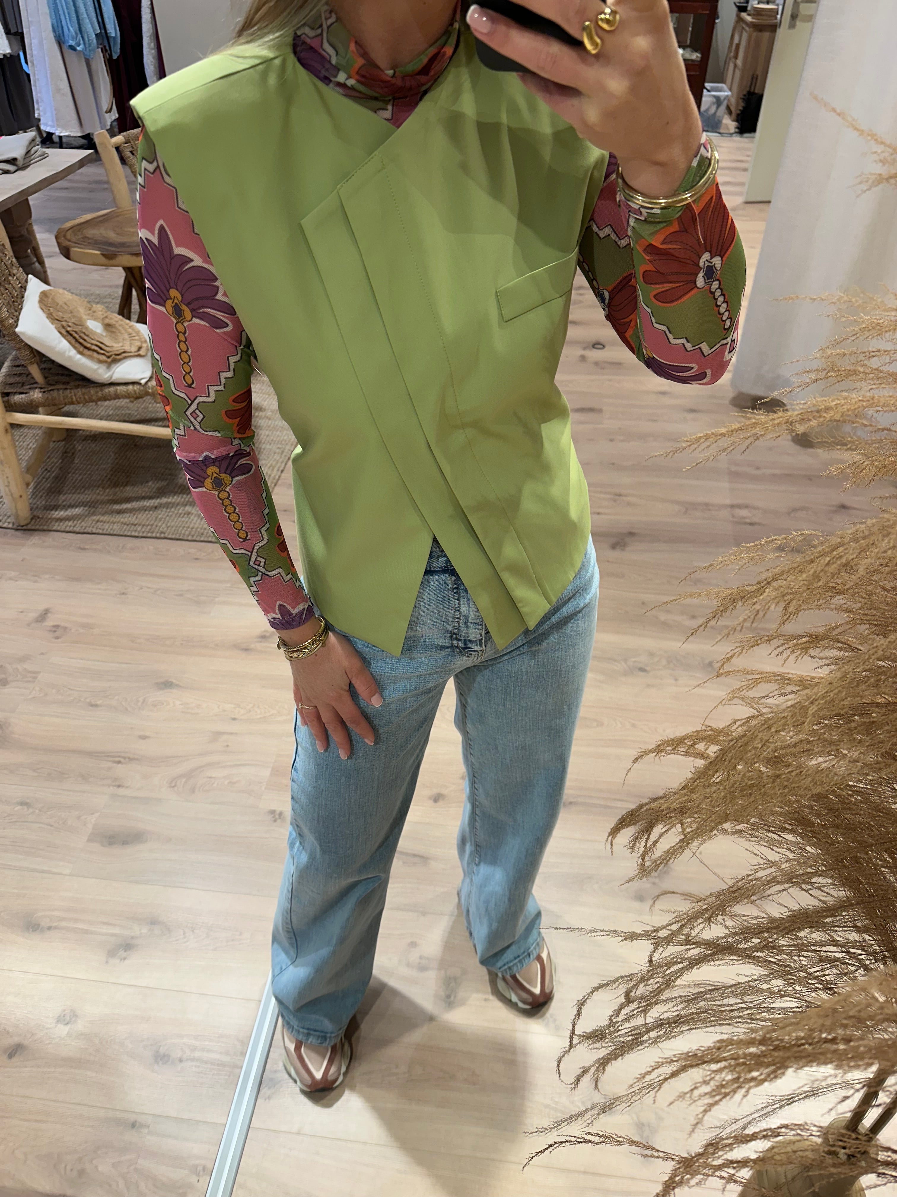 Asymmetrisch gilet groen | Evi