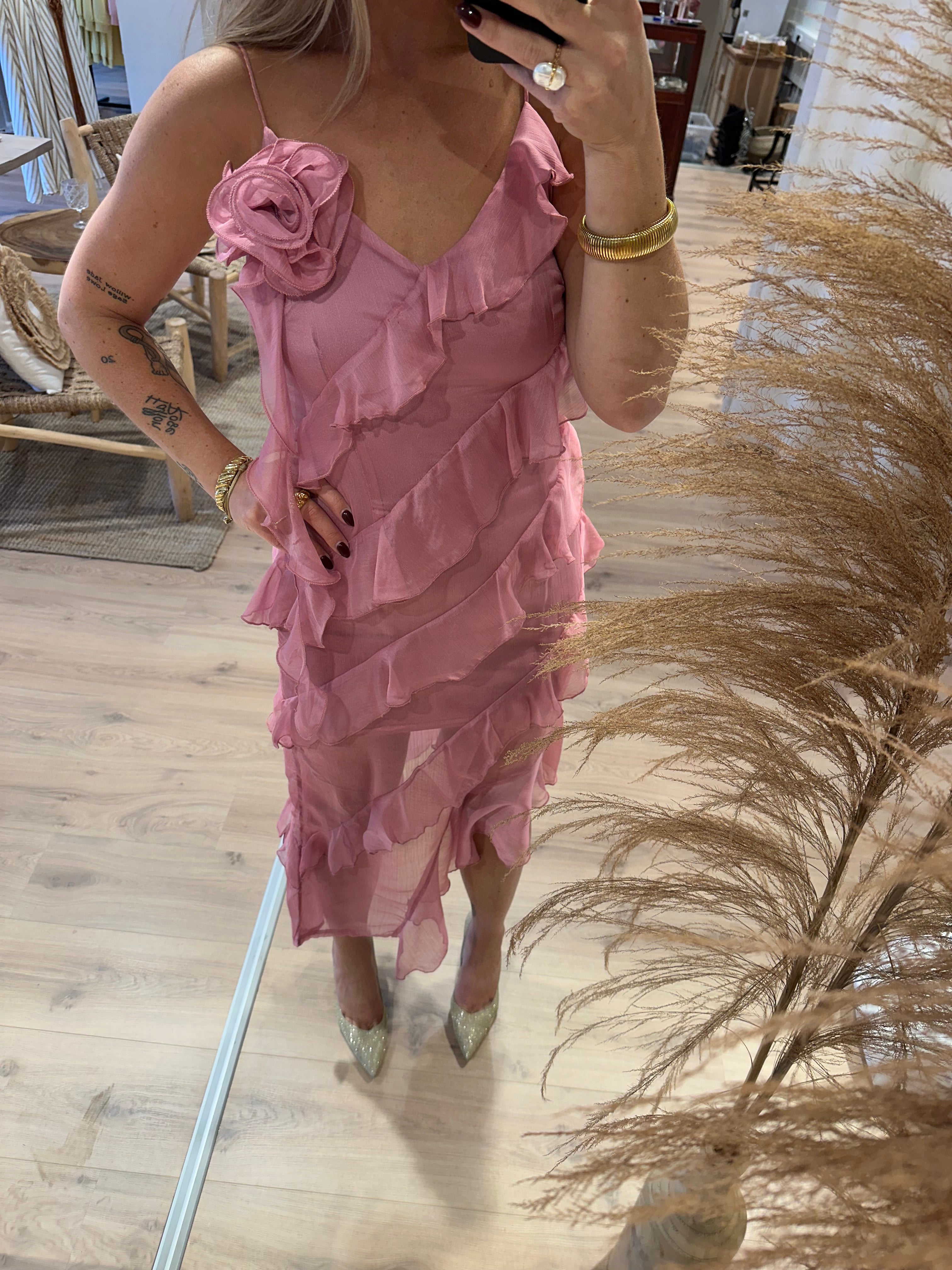 Asymmetrische jurk met volants oud roze | Kate