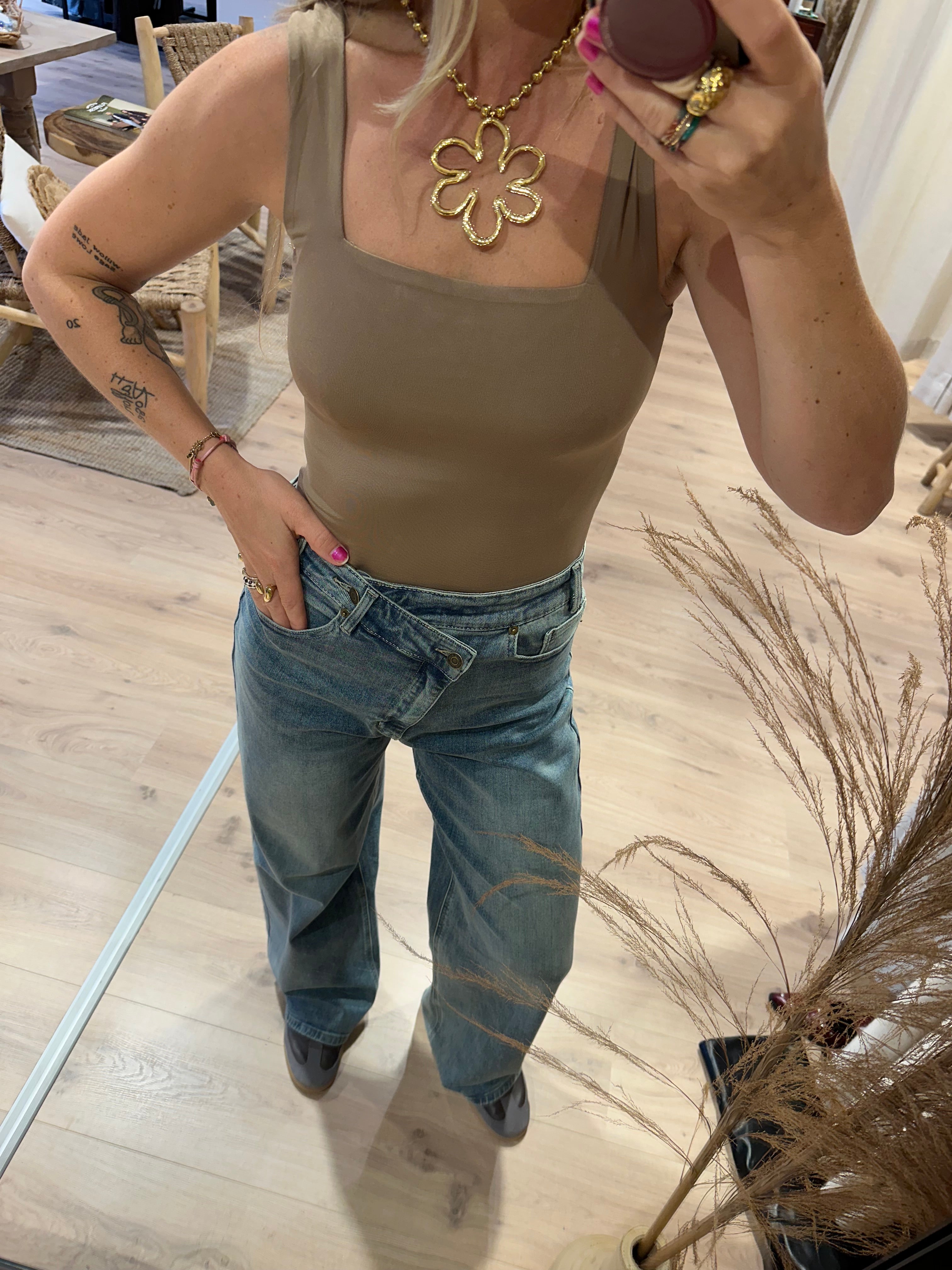 Basis top met vierkant hals taupe | Marly