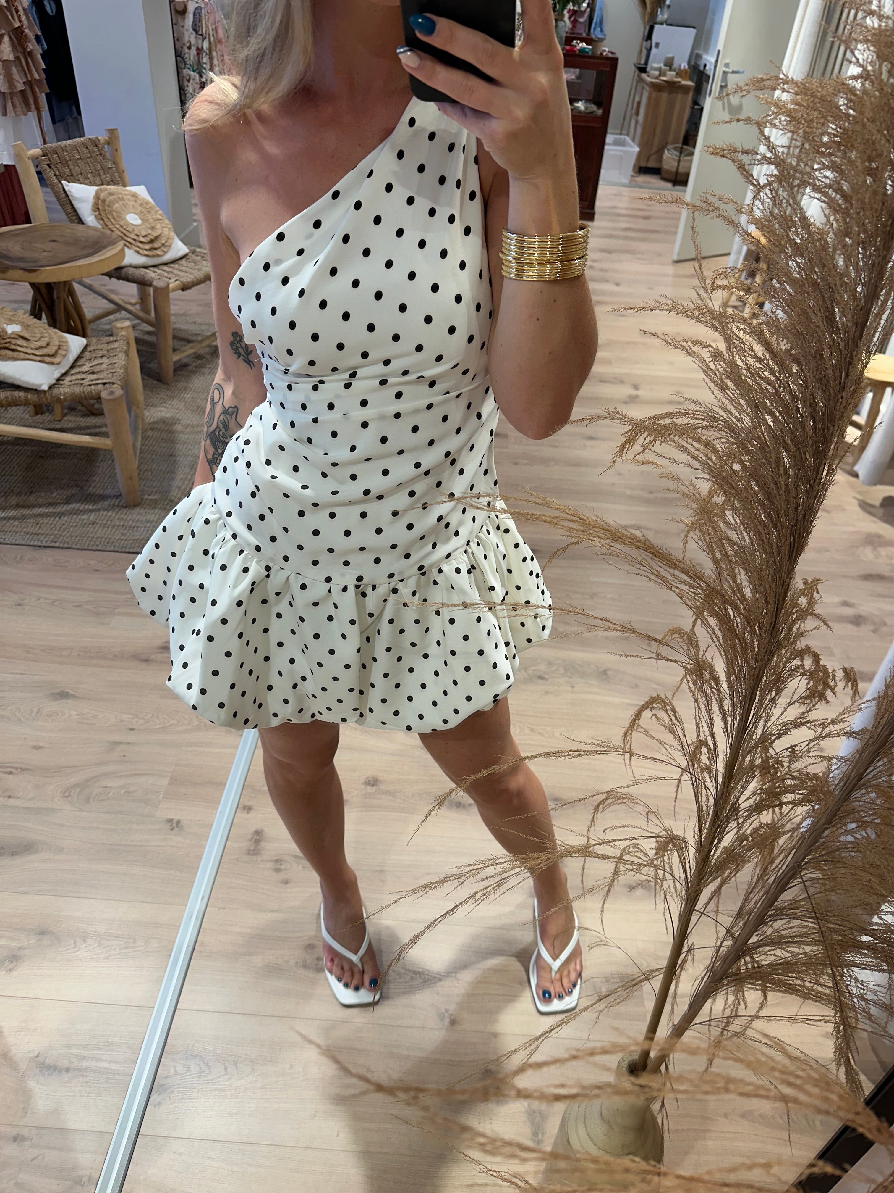 Ballon jurkje met polka dots wit | Doris