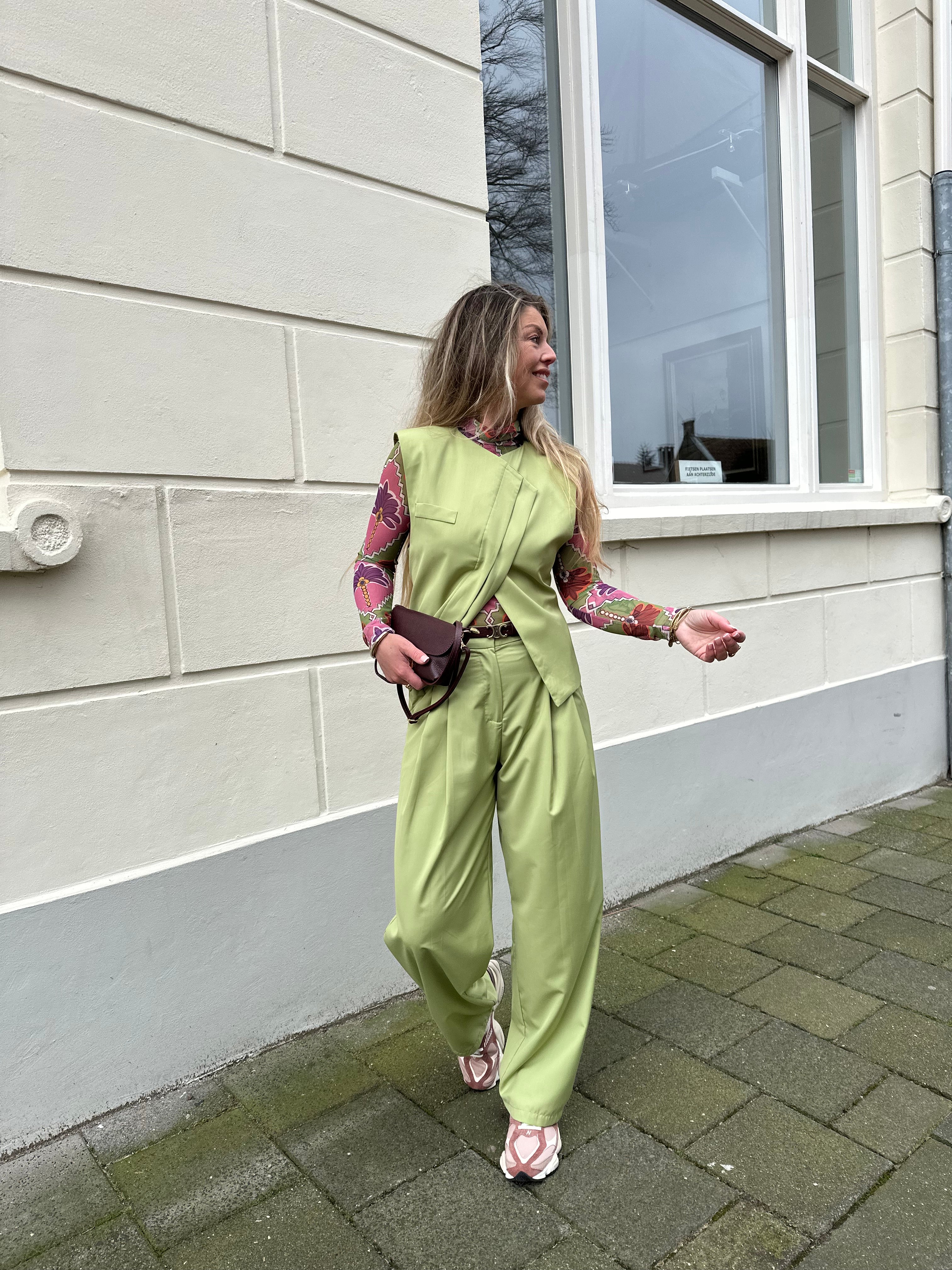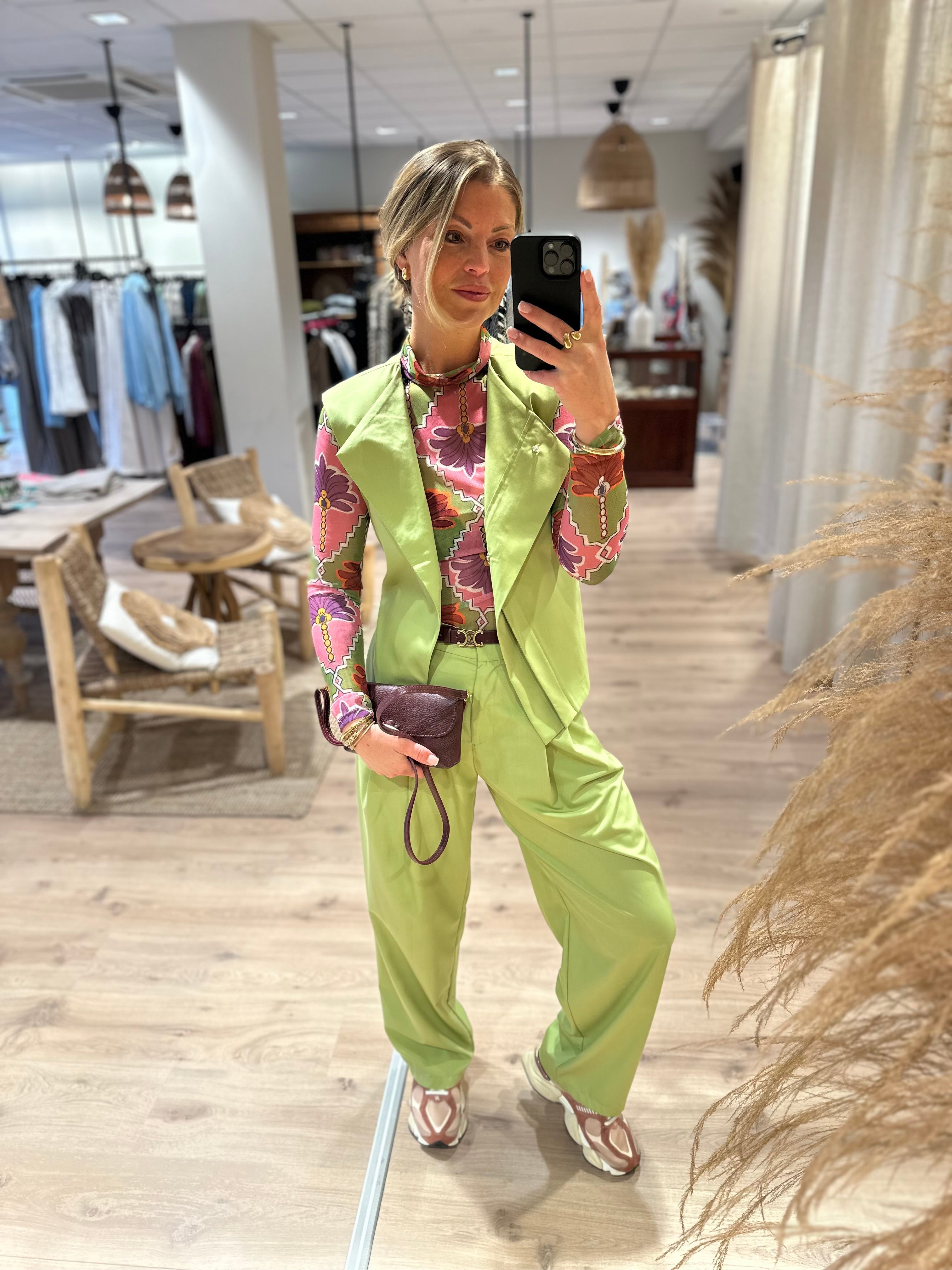 Bandplooi pantalon groen | Evi
