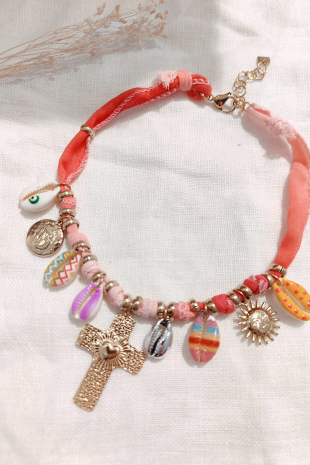 Bandana ketting met bedels roze | Cleo