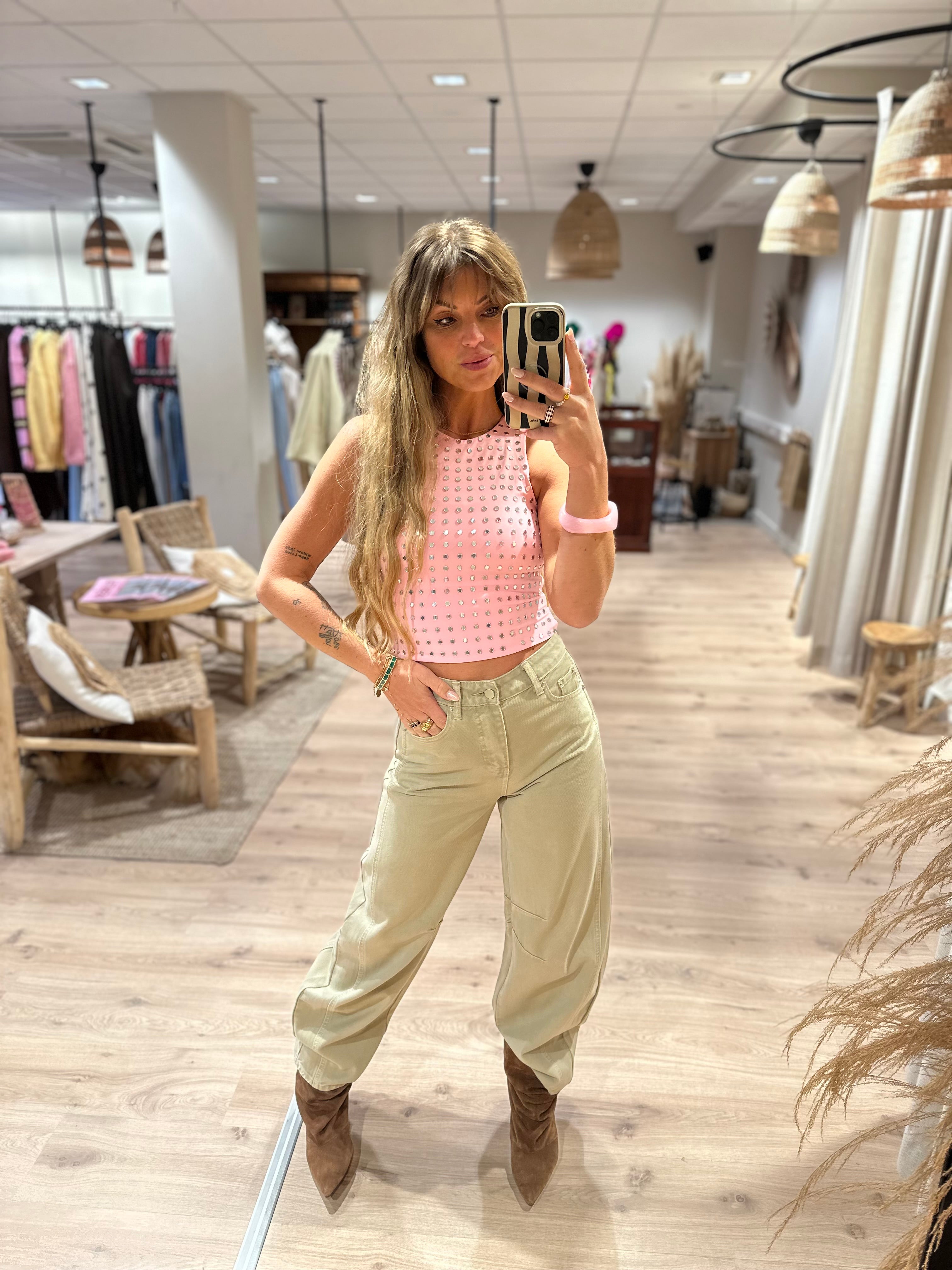 High wais barrel jeans taupe | Eva