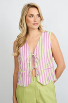 FLURESK gestreept gilet met strikjes paars | Beatriz