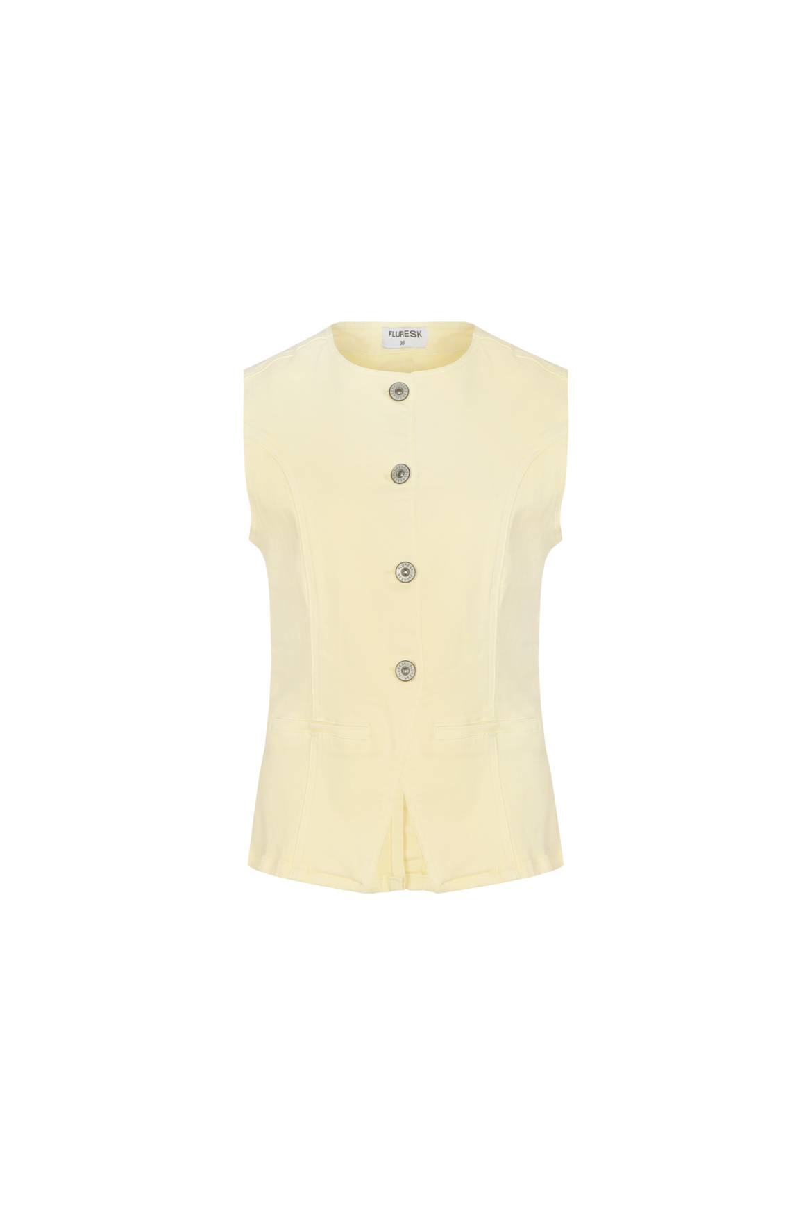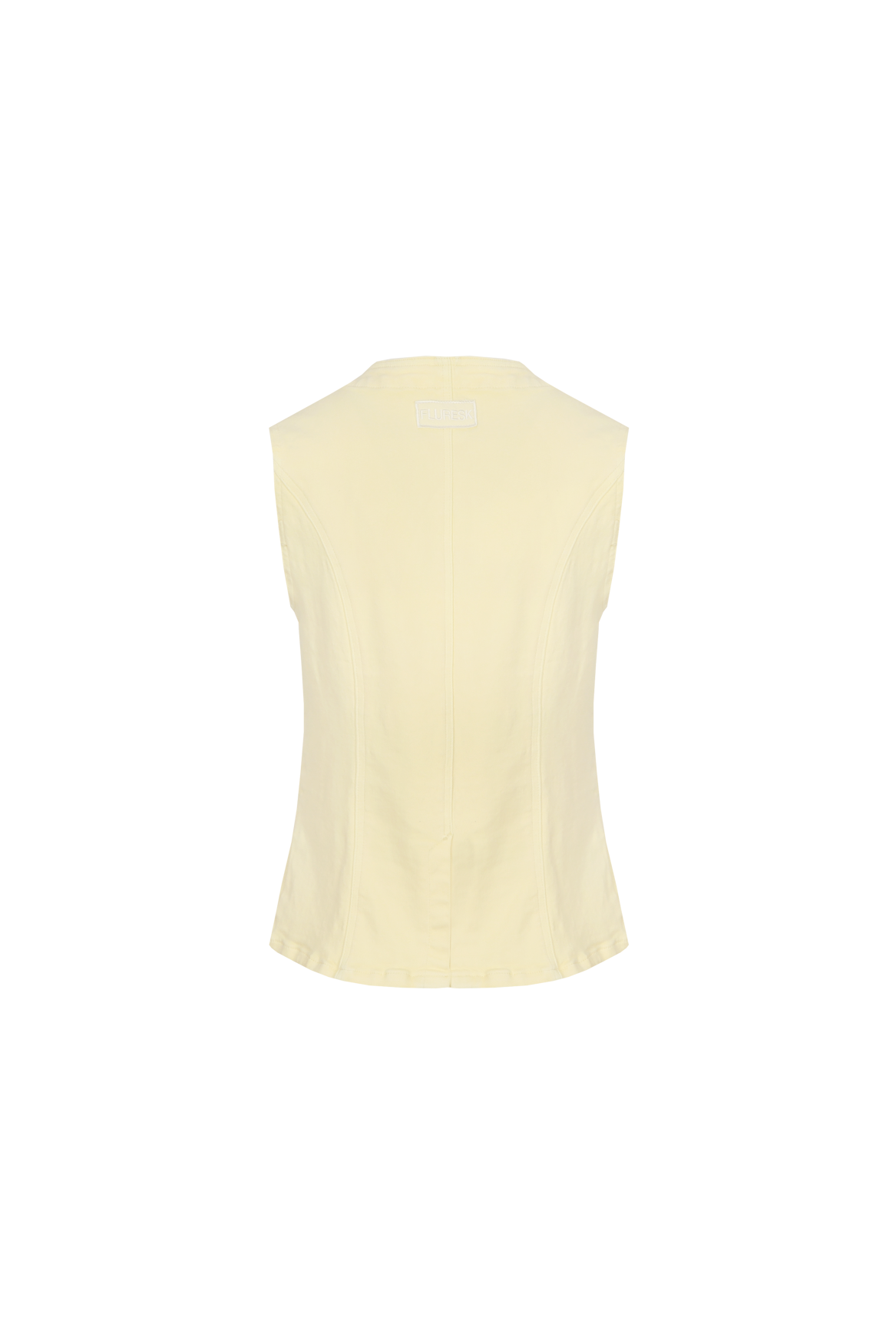 Power dressing, maar dan sleeveless. De ZENI GILET heeft een aangesloten fit, een ronde hals en een knoopsluiting die zorgt voor een clean en vrouwelijke uitstraling. De stevige stof accentueert mooi je taille en geeft net dat beetje structuur. Combineer ’m met de VERINA BROEK voor een strong co ord set of draag ’m los op een jeans voor een effortless chic look.