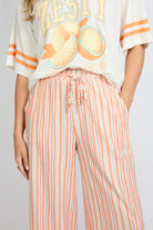 FLURESK gestreepte broek met elastiek oranje | Aster