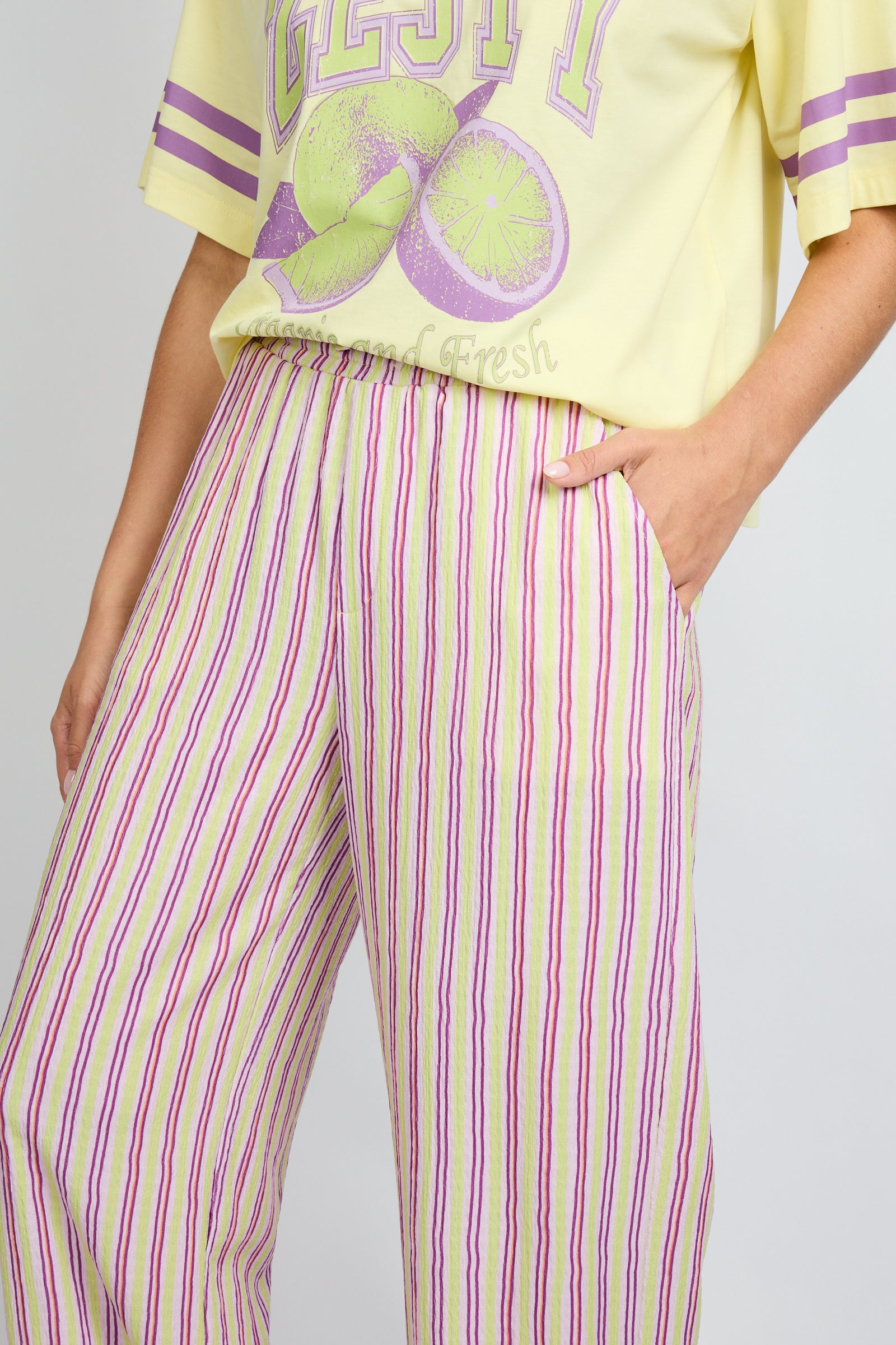 FLURESK gestreepte broek met elastiek paars | Aster