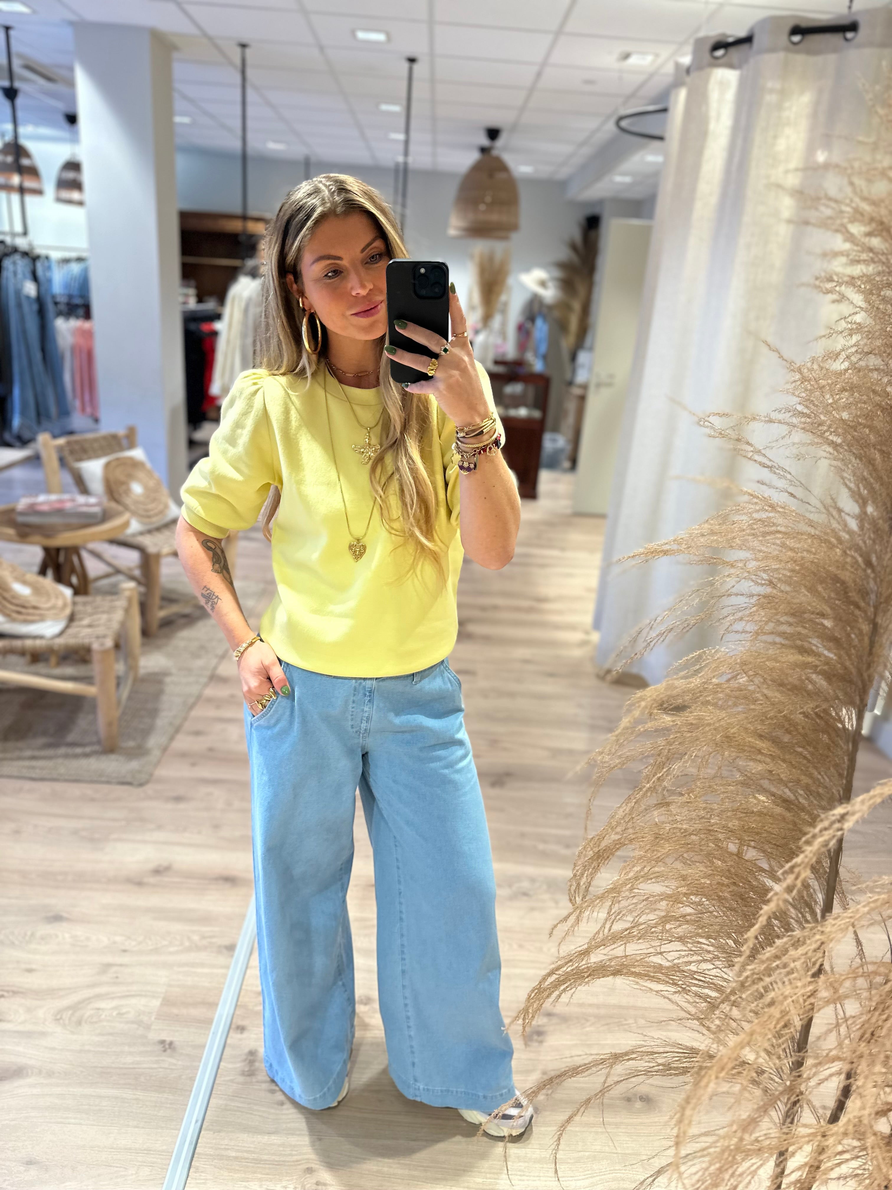 Sisters Point sweater met pofmouwen geel | NEW.PEVA-PUFF.SS1