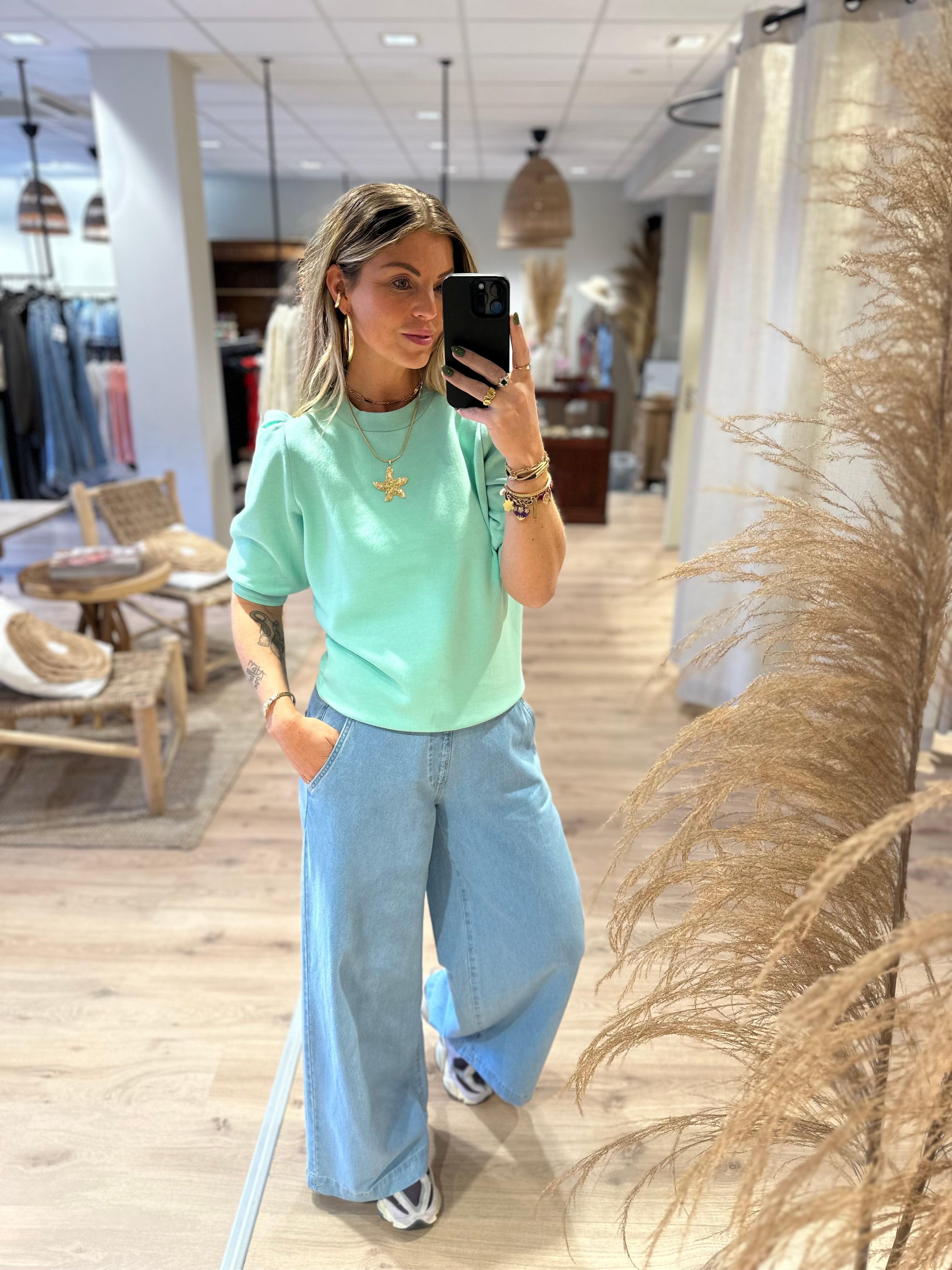 Sisters Point sweater met pofmouwen mint | NEW.PEVA-PUFF.SS1