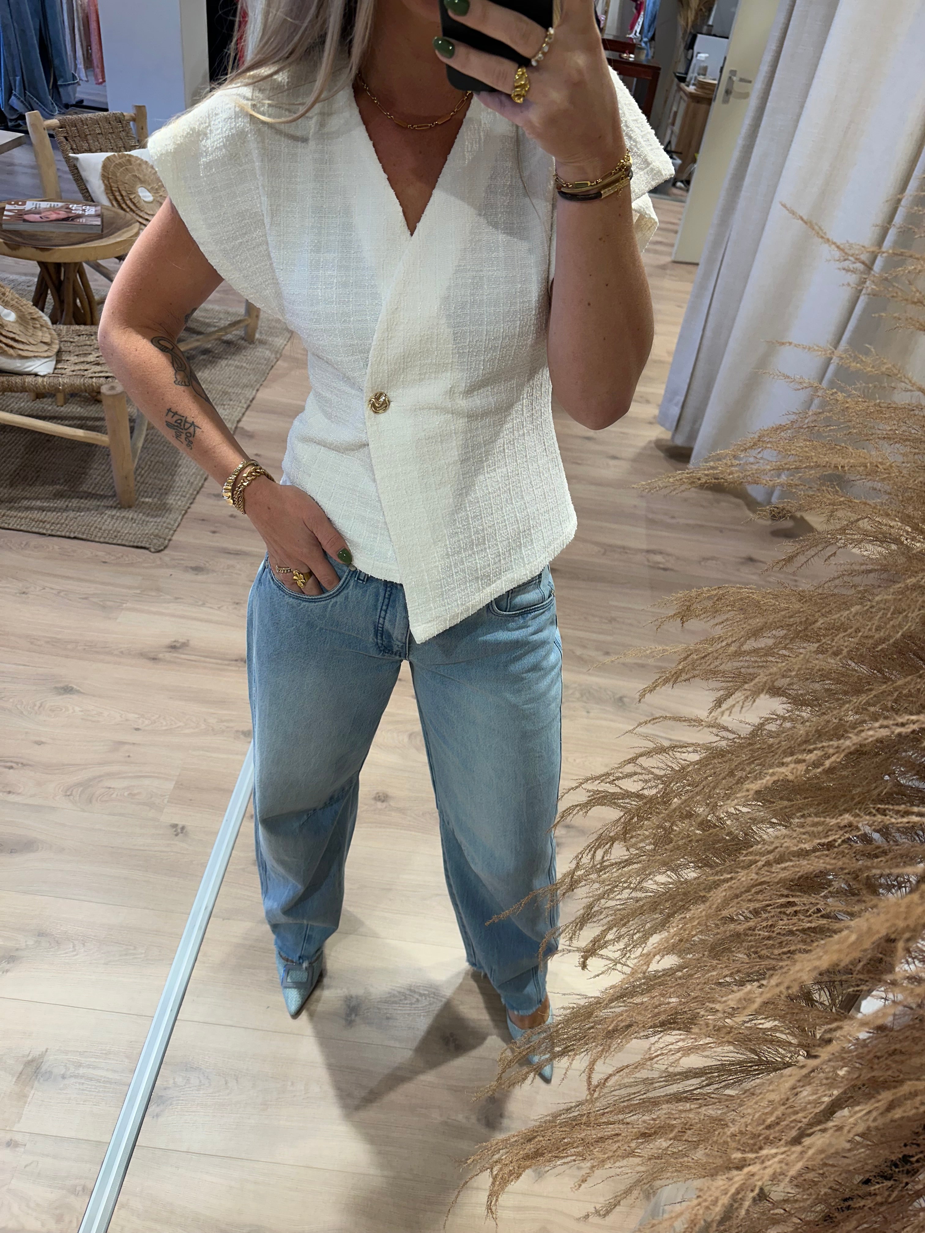 Sisters Point getailleerd overslag gilet crème | EVELA-VE
