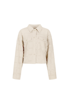 Gestructureerd en opvallend: de ZIVA JACKET is een kort jasje met karakter. De fringed fabric zorgt voor een uniek oppervlak, terwijl de cropped fit perfect werkt met high waisted BROEK of de bijpassende KALINA BROEK. De grote borstzakken en drukknopen maken het speelse plaatje compleet.