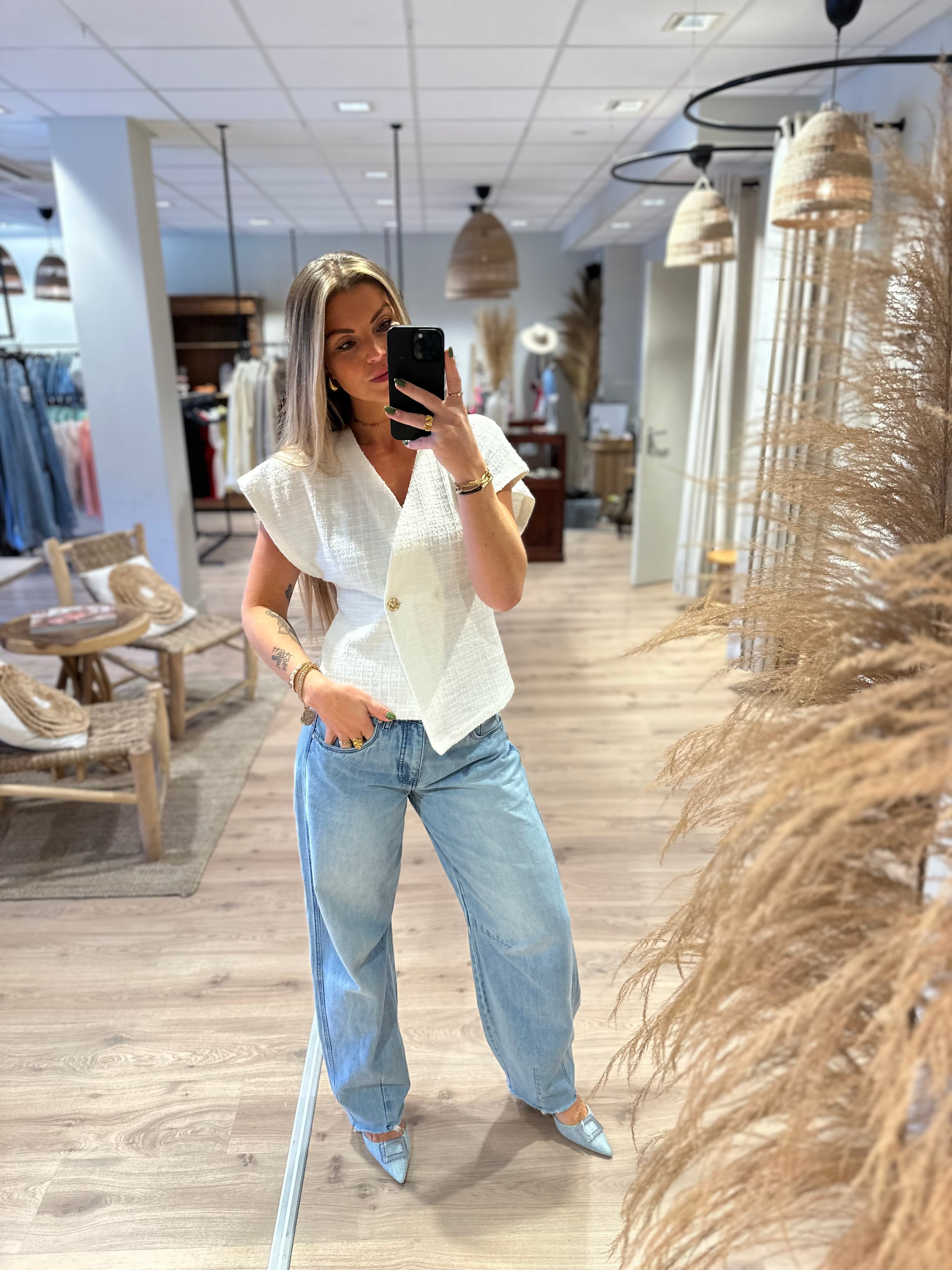 Sisters Point getailleerd overslag gilet crème | EVELA-VE