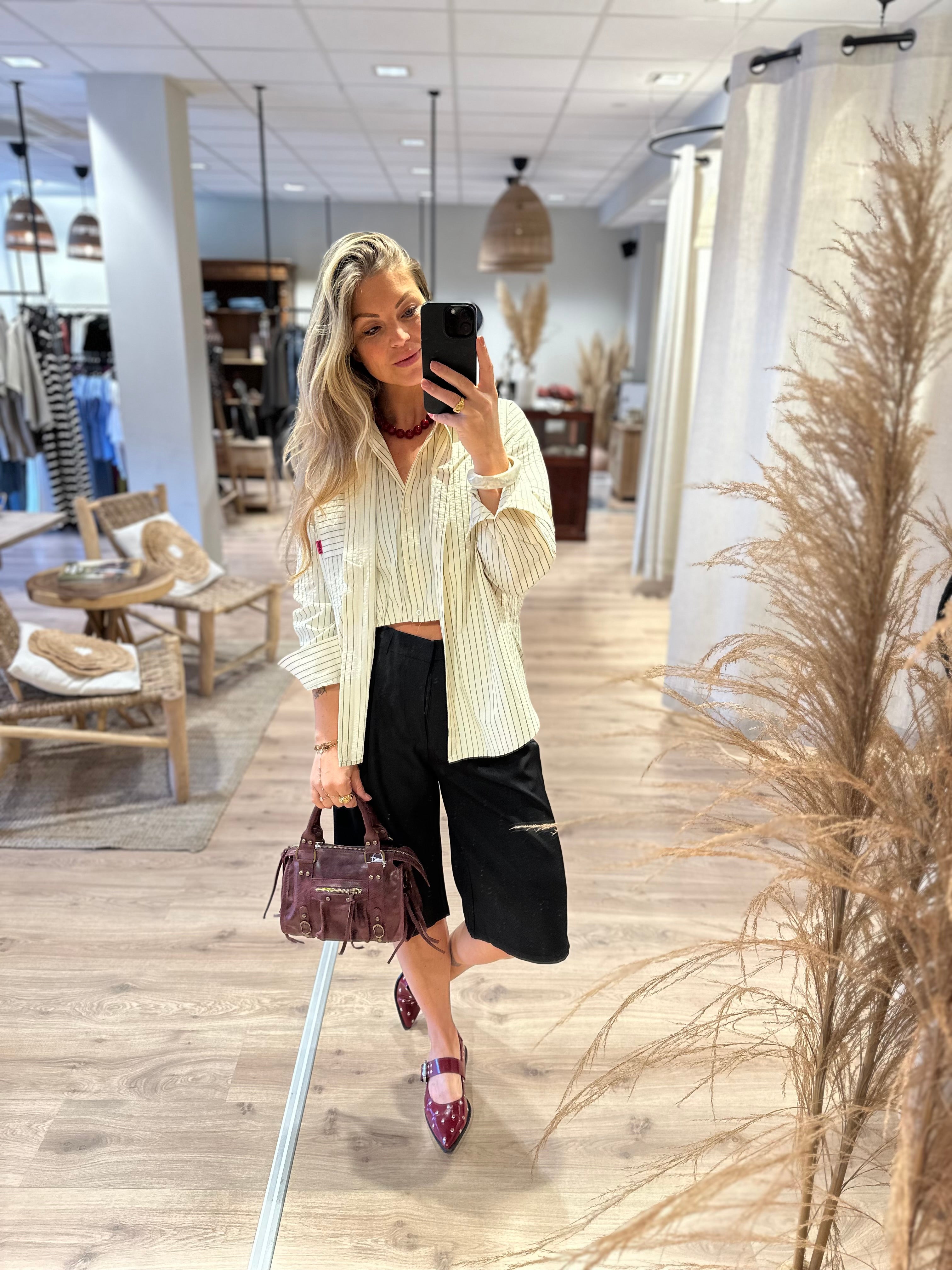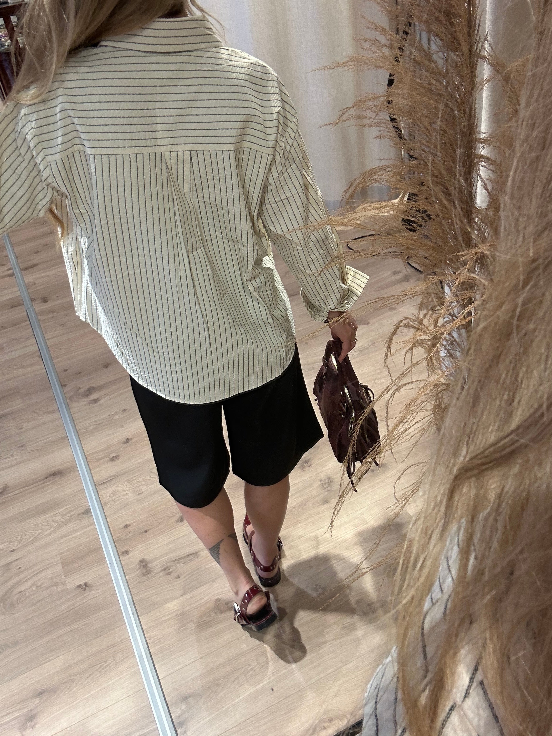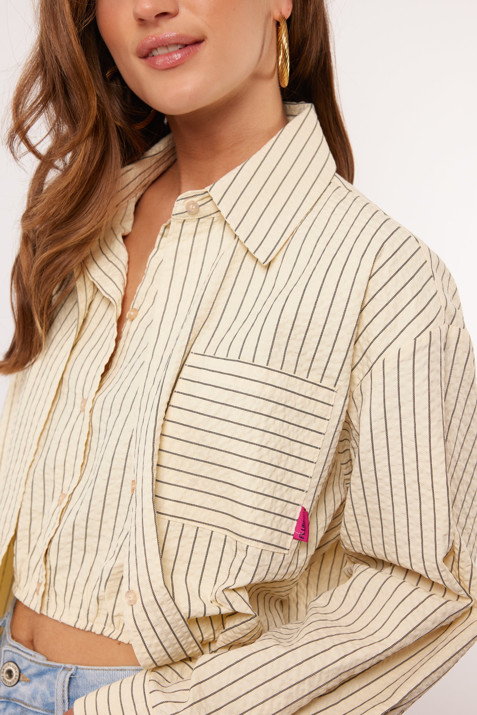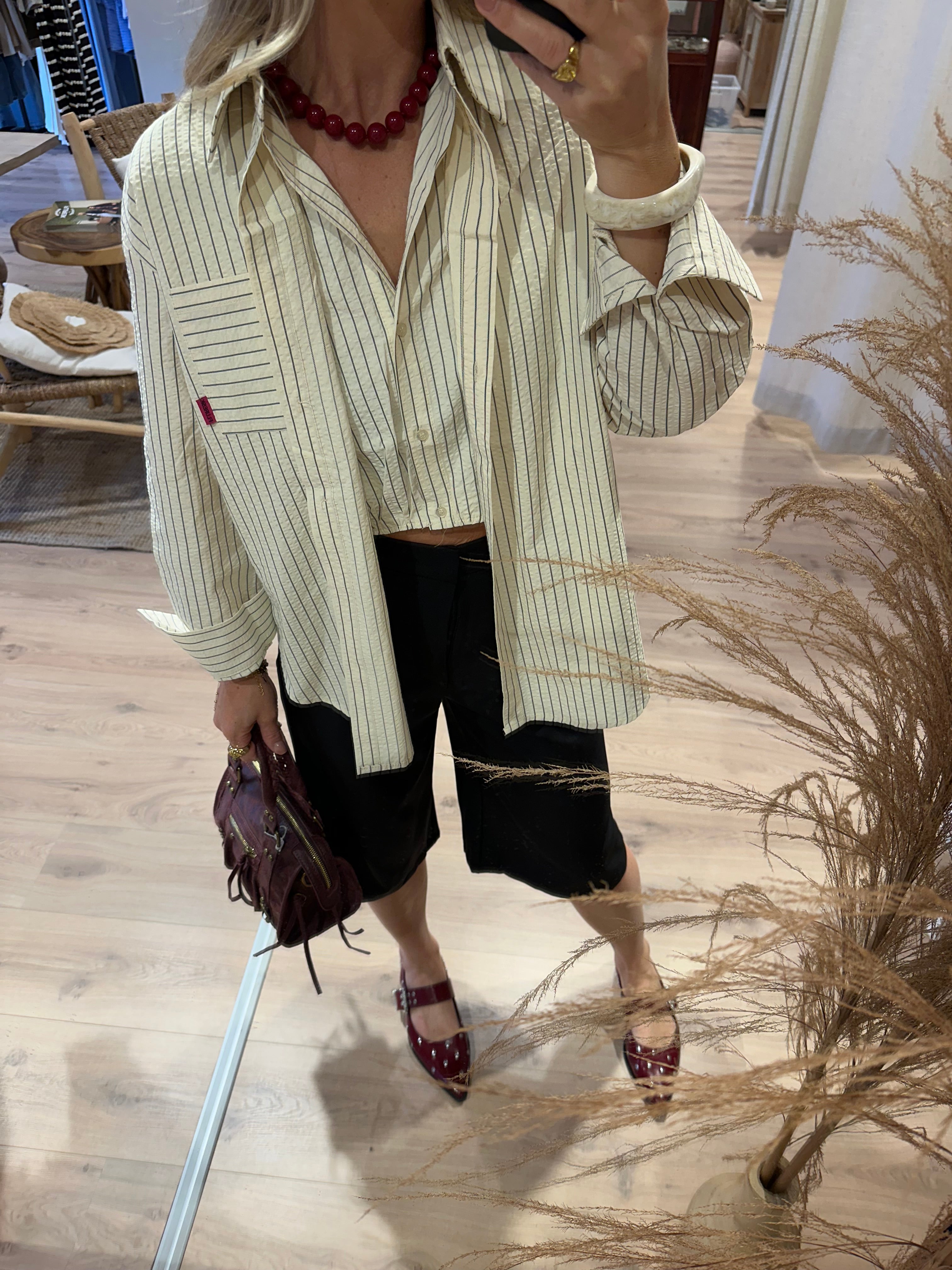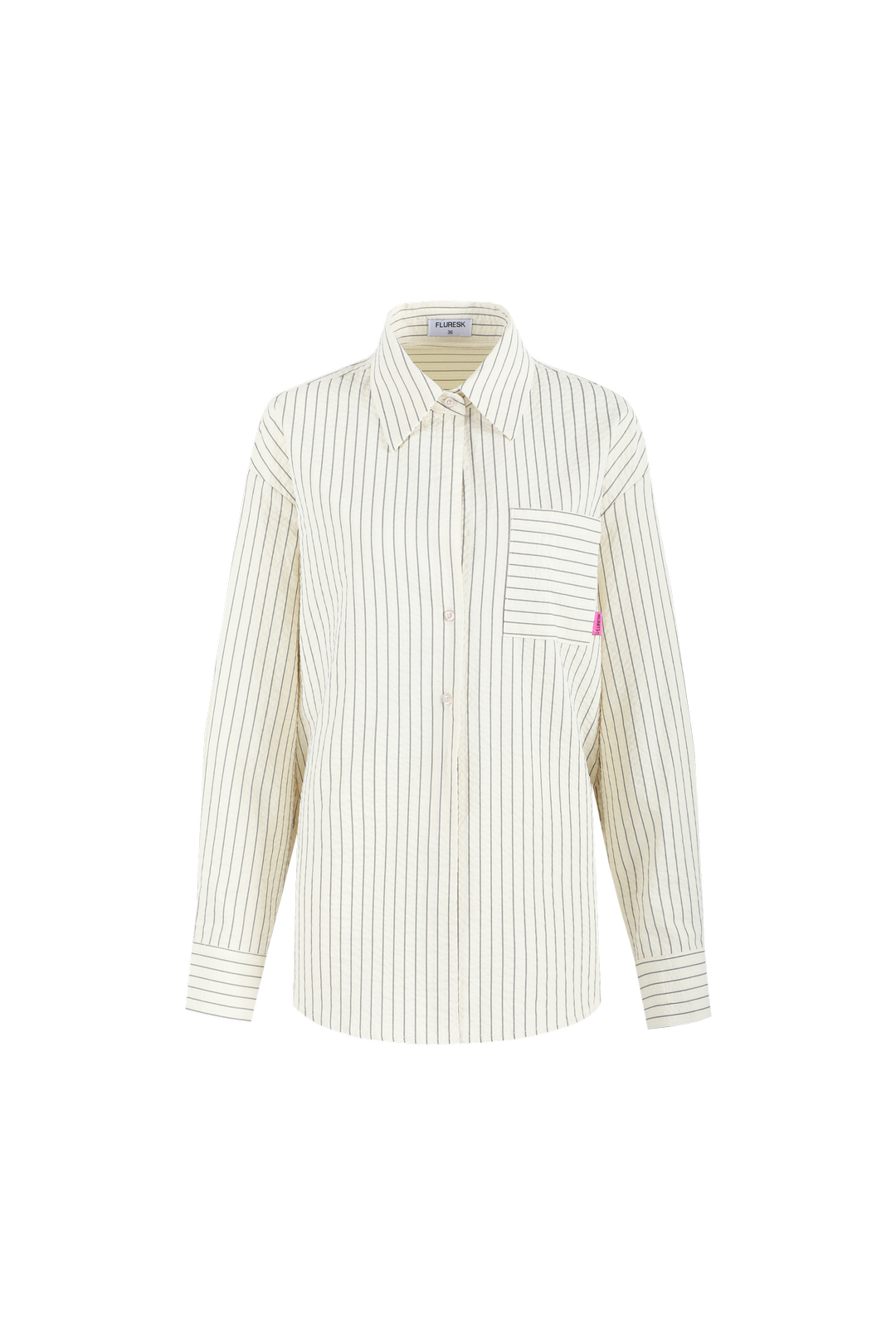 Fresh, fun & floral De LUNARA BLOUSE combineert een zachte crèmekleur met fijne verticale streep en een roze logo-detail op de borst. De klassieke kraag en oversized fit zorgen voor een tijdloze look. Easy to wear, easy to love.