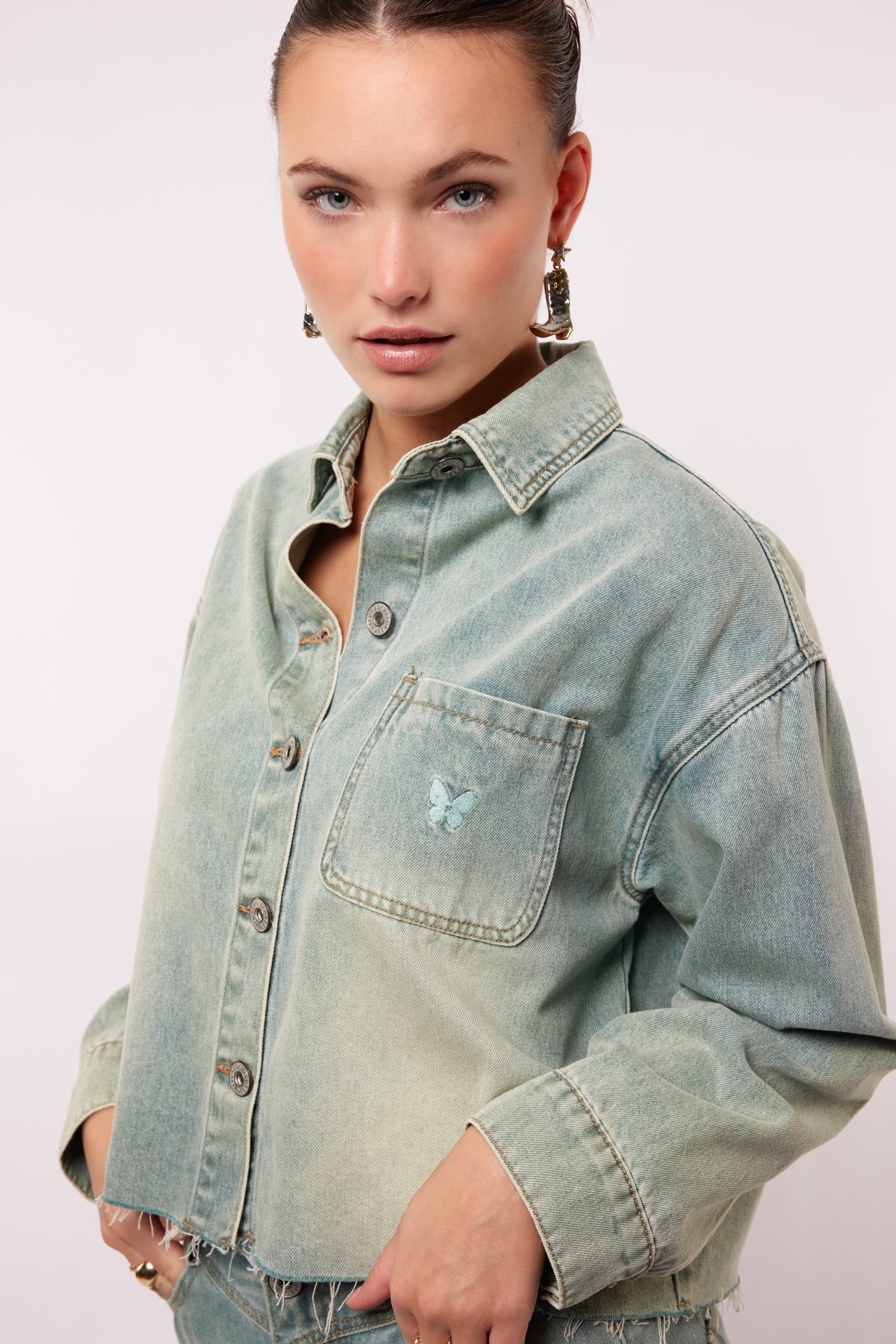 FLURESK denim blouse groen | Vaya