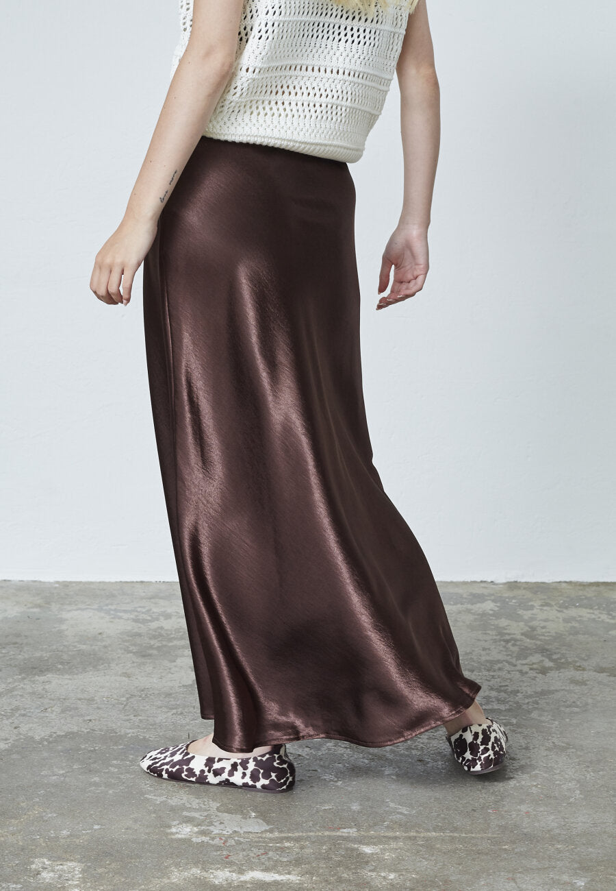Sisters Point satijnen maxi rok bruin | N.GEWO-SK4