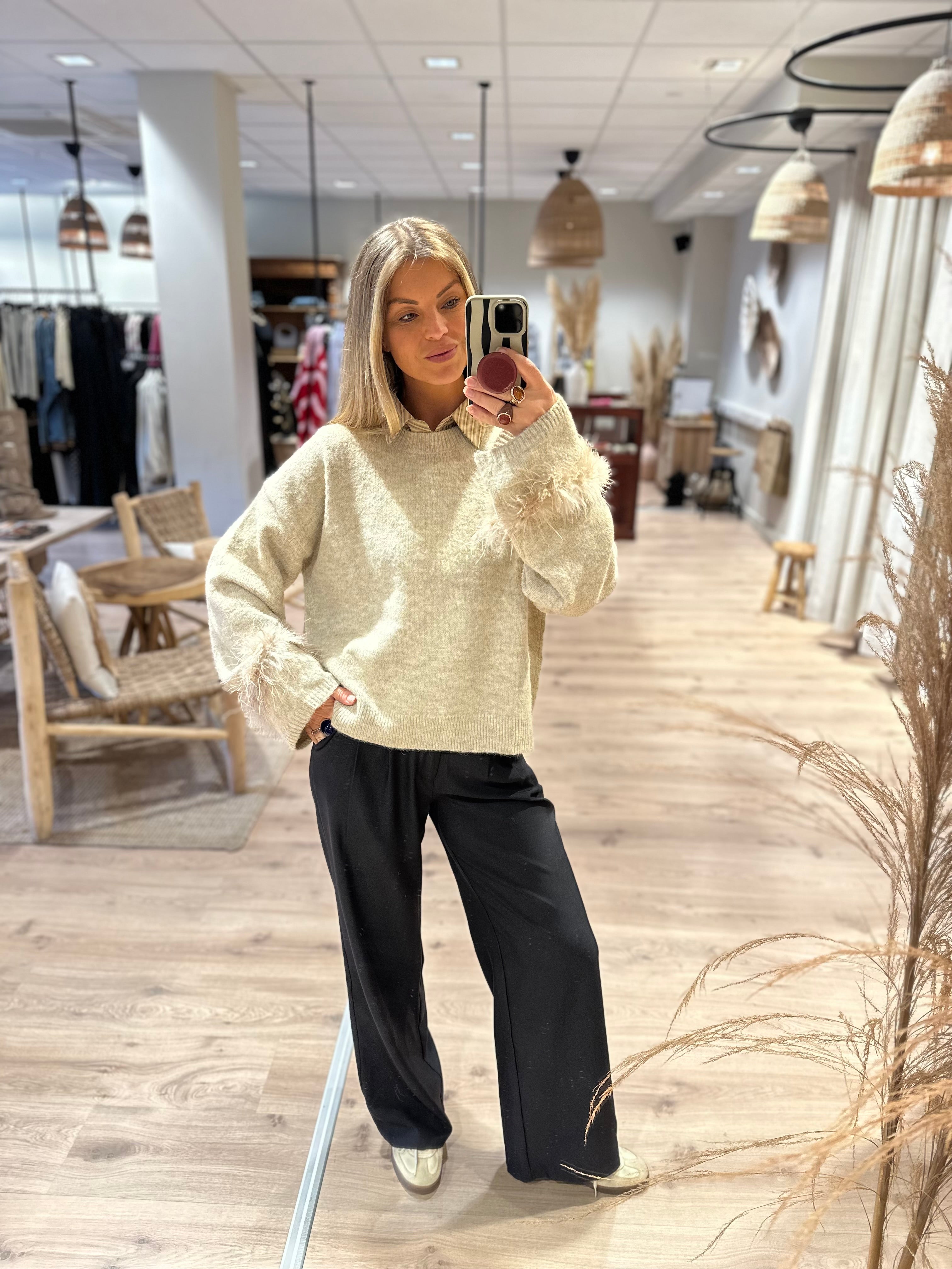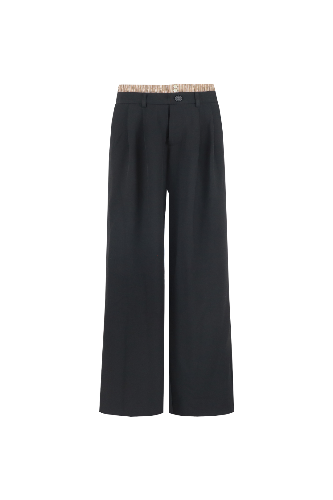 FLURESK wijde pantalon met dubbele tailleband zwart | Ralina