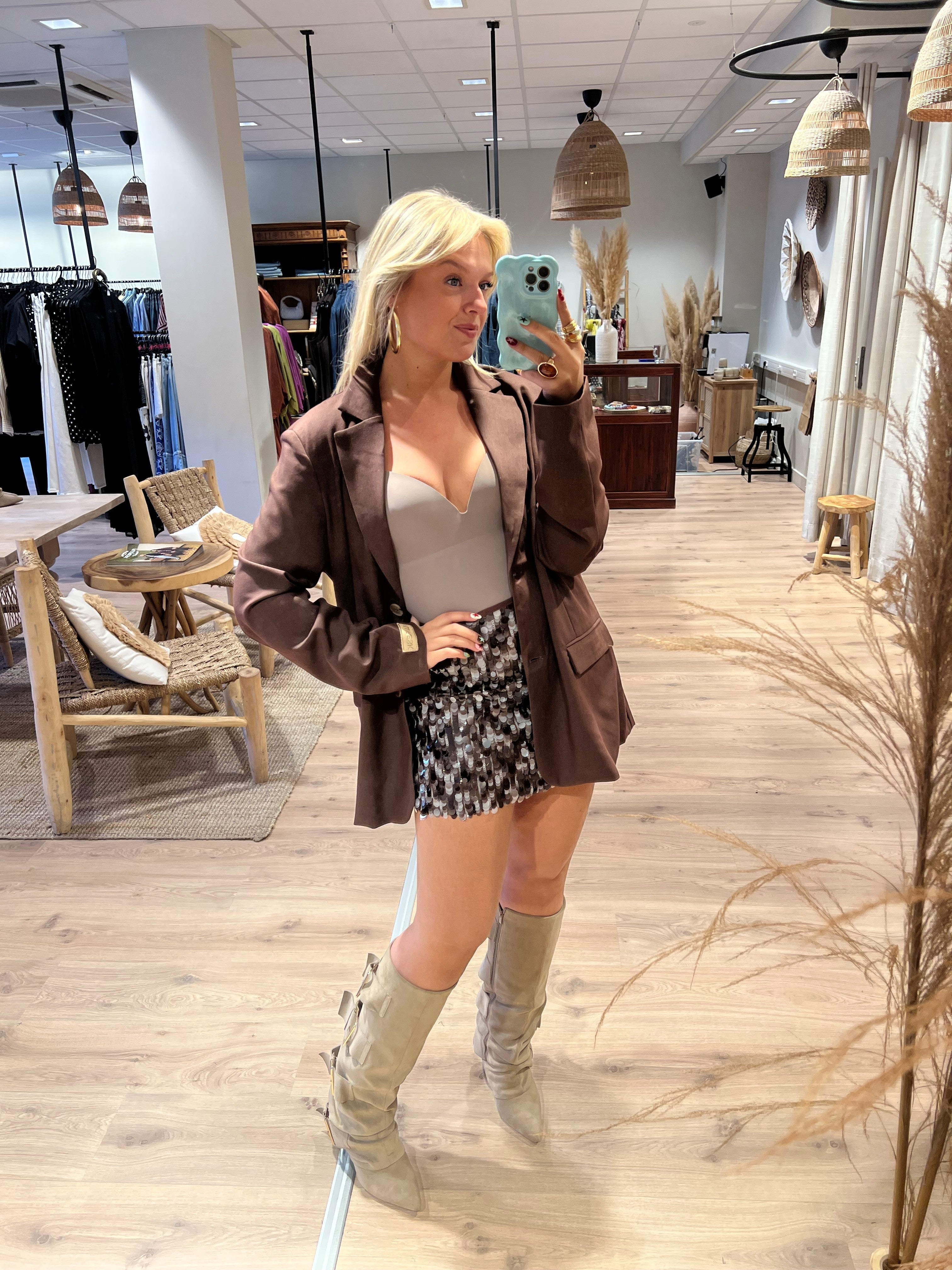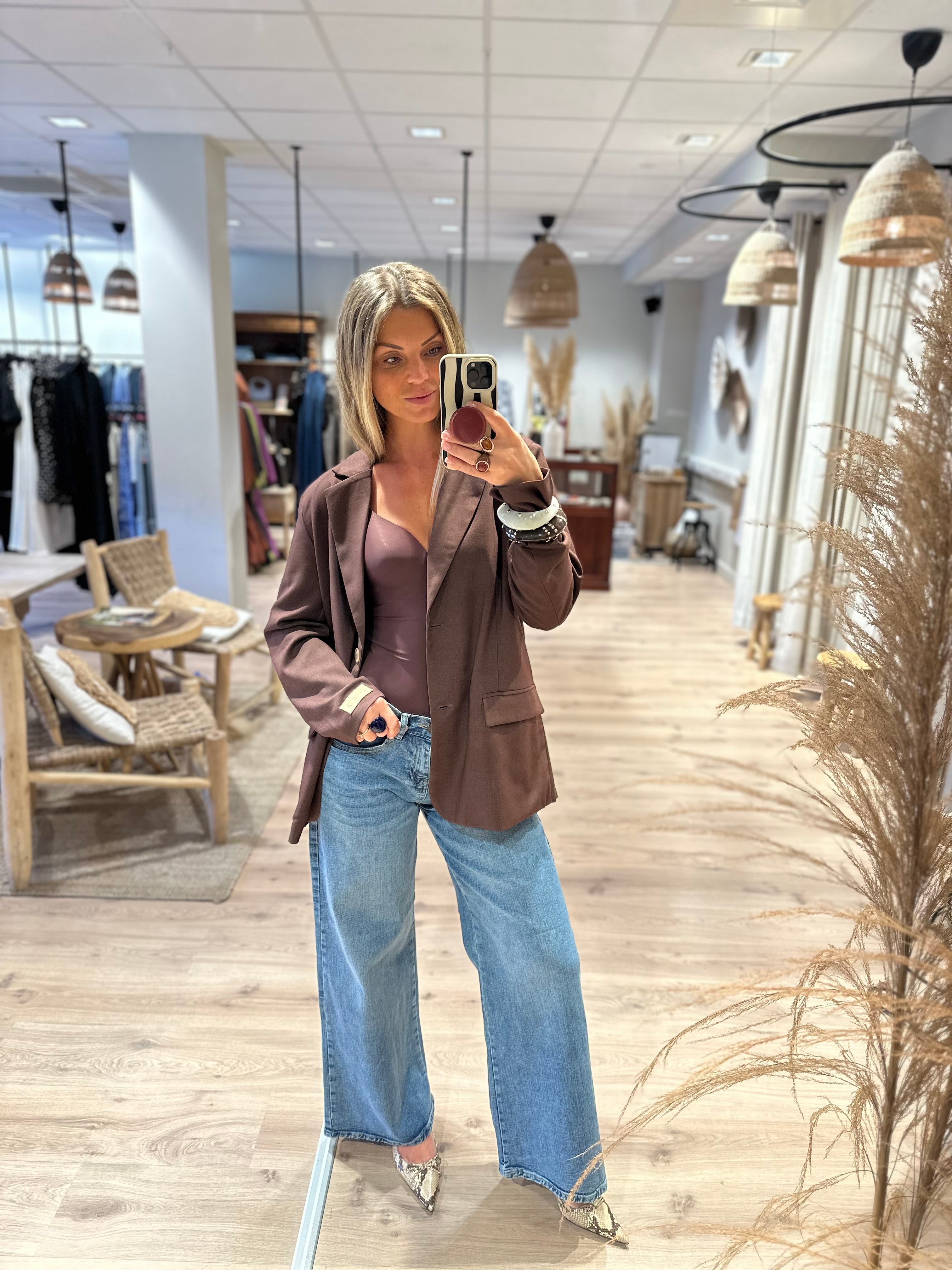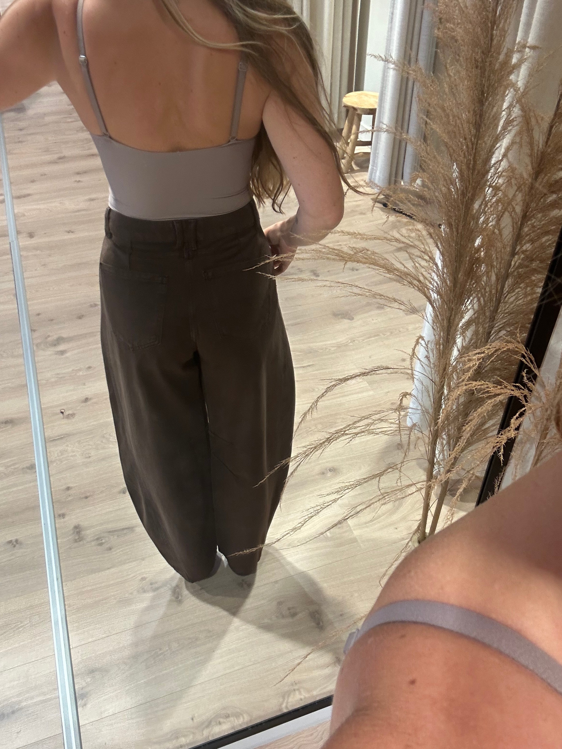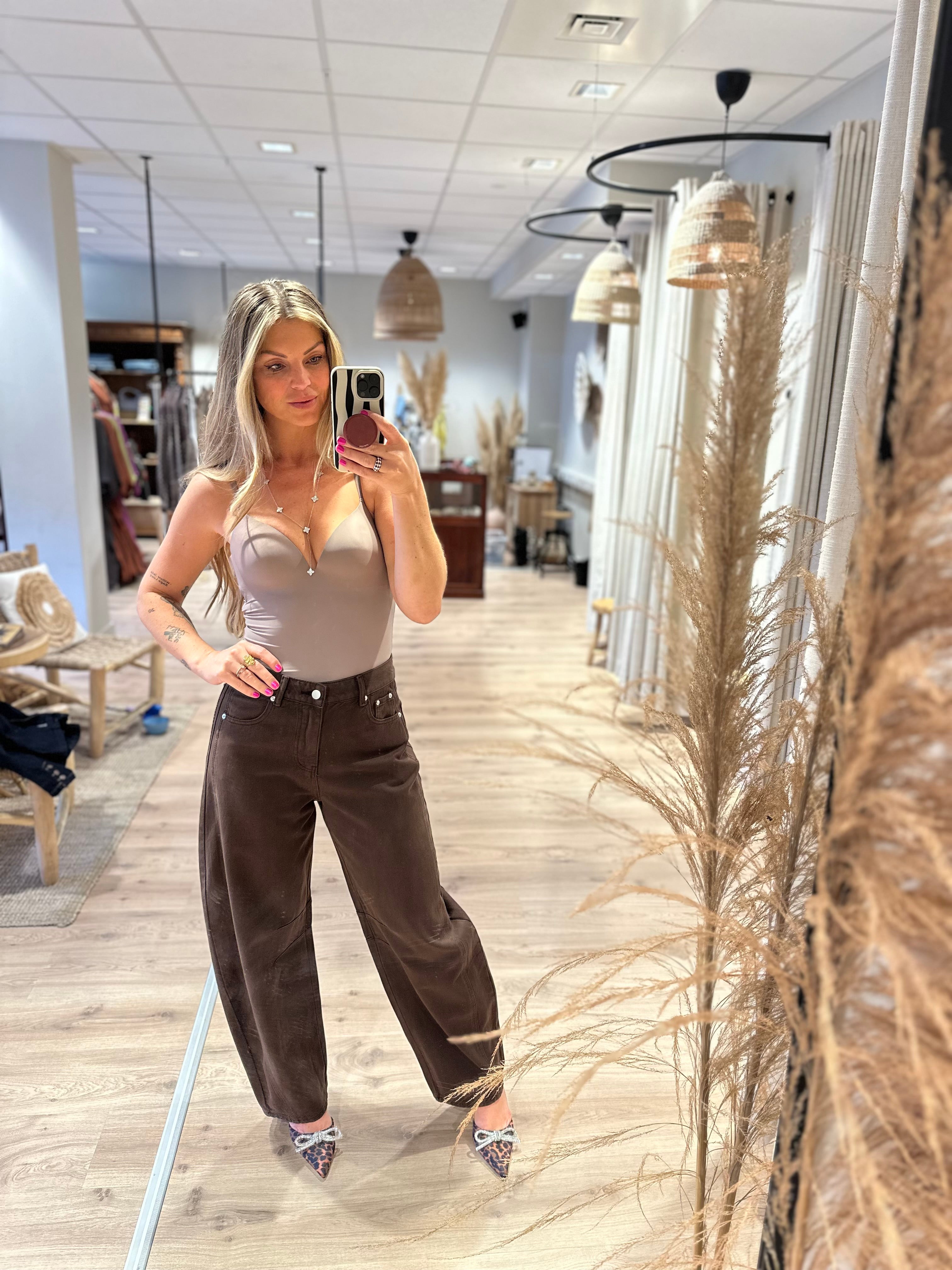 FLURESK getailleerde cropped blouse taupe | Nivya