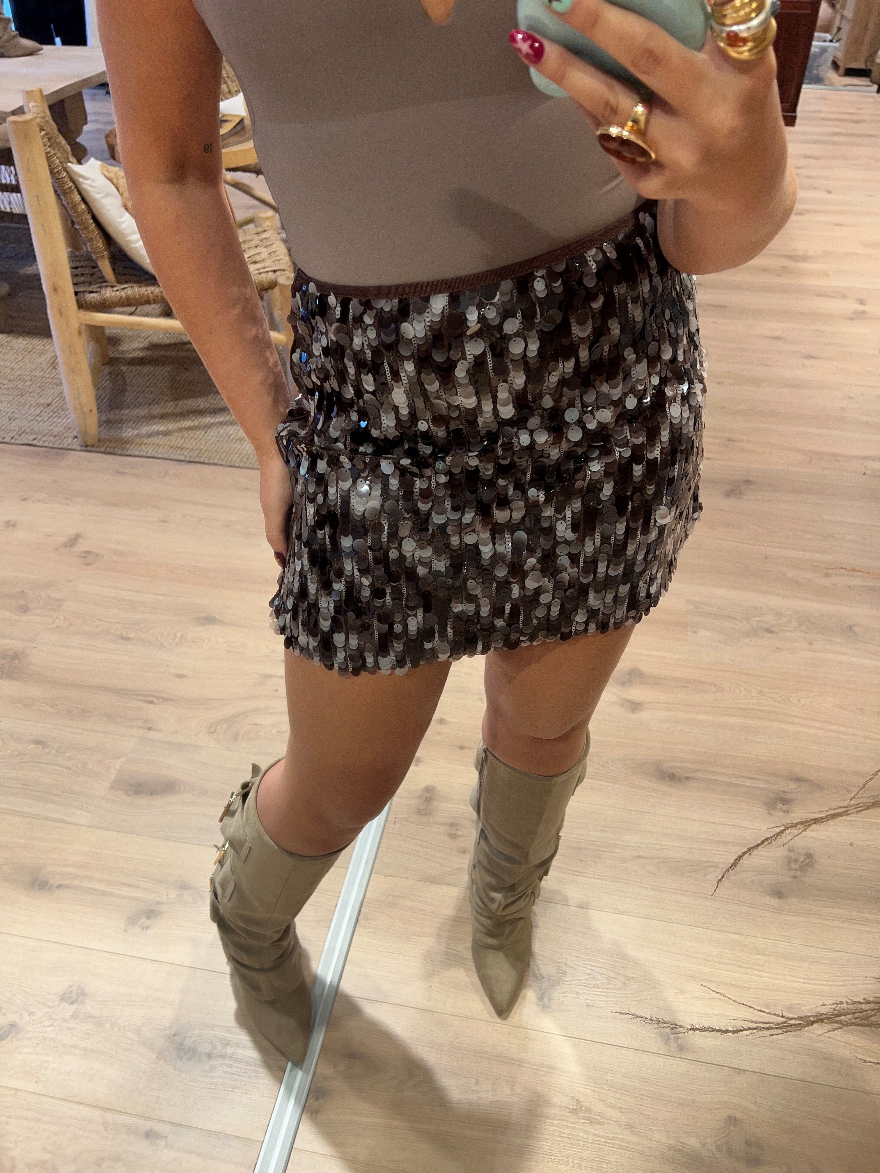 Sisters Point geplooide mini rok met print bruin | NOPE-SK4