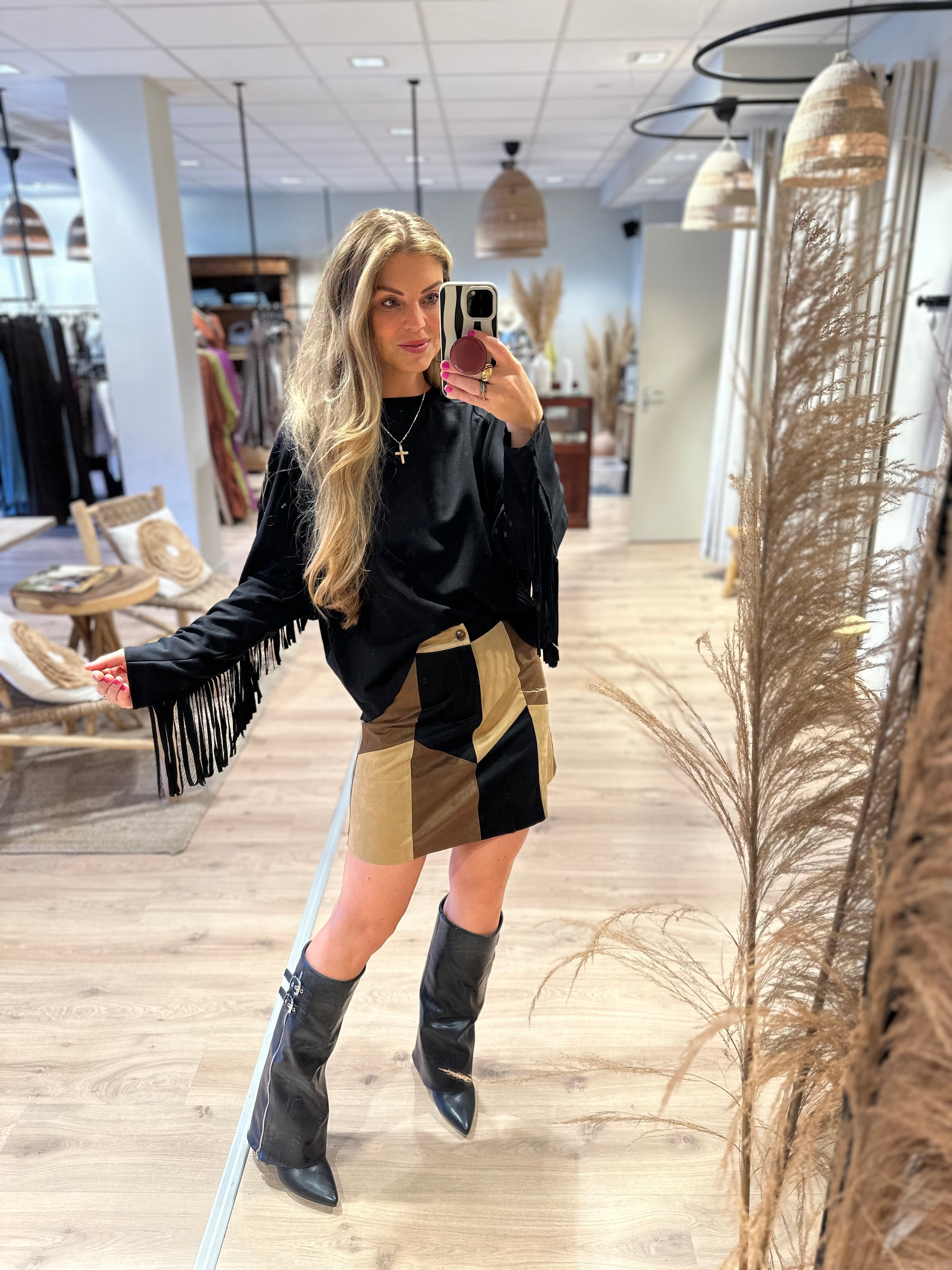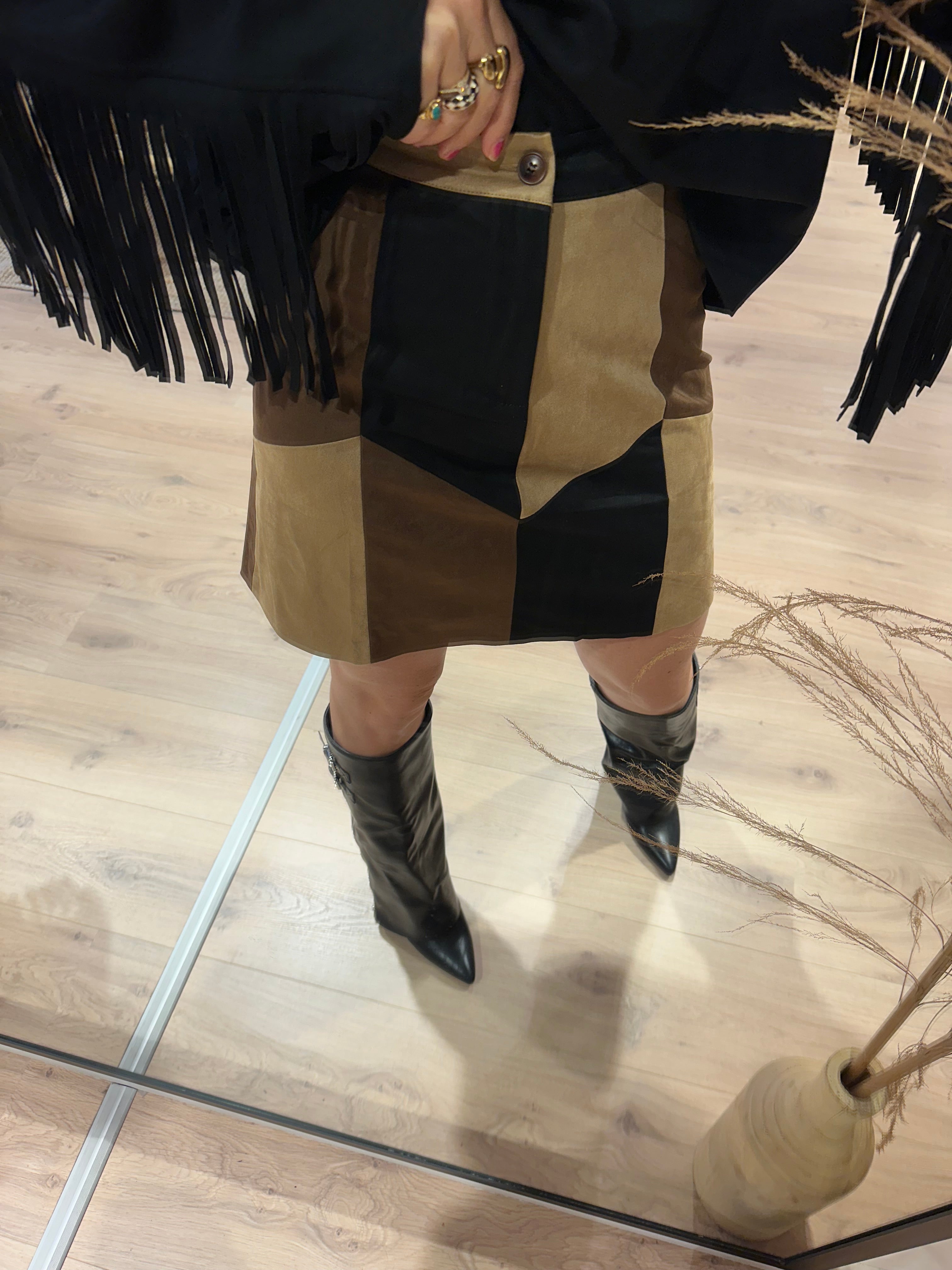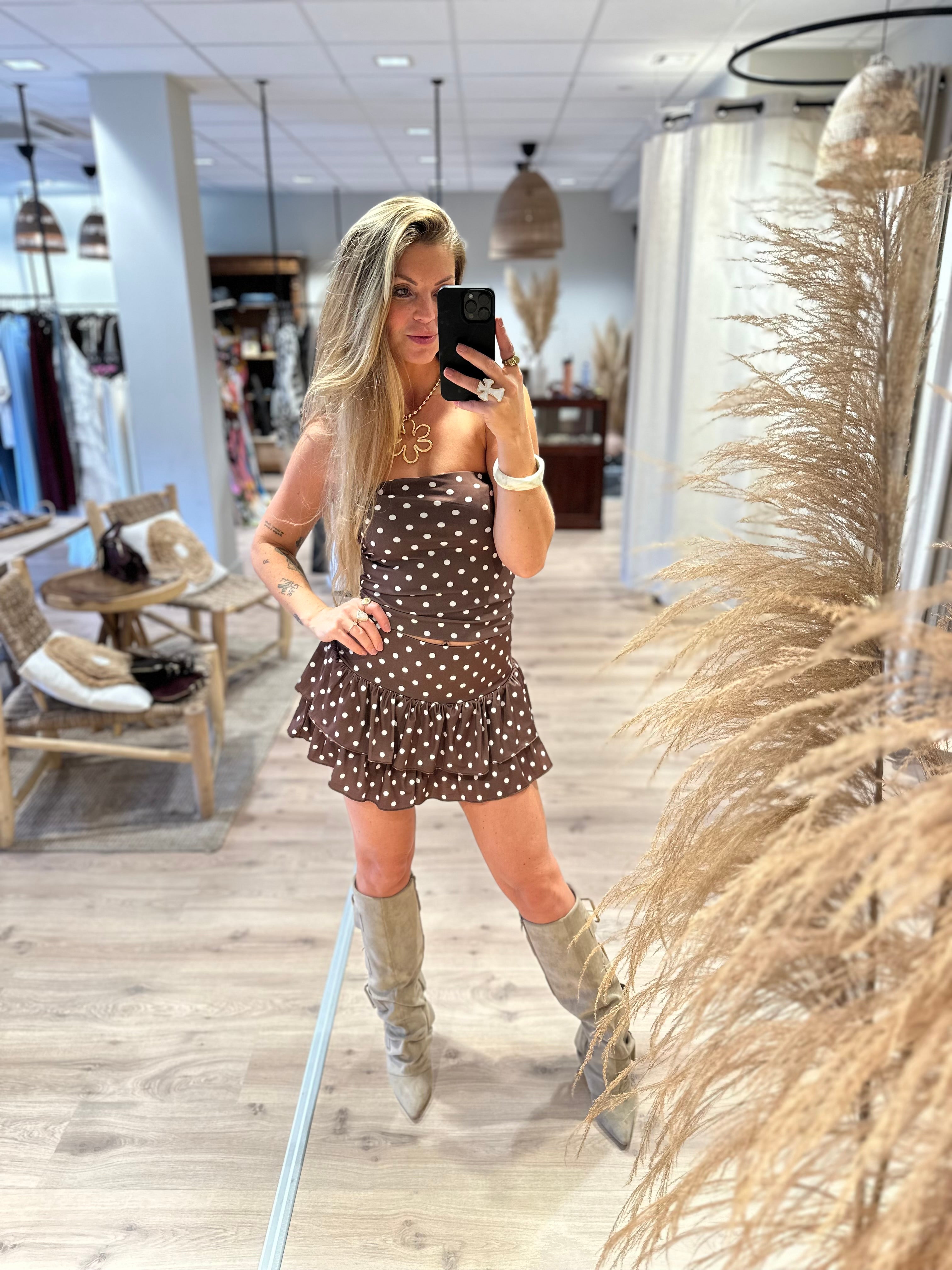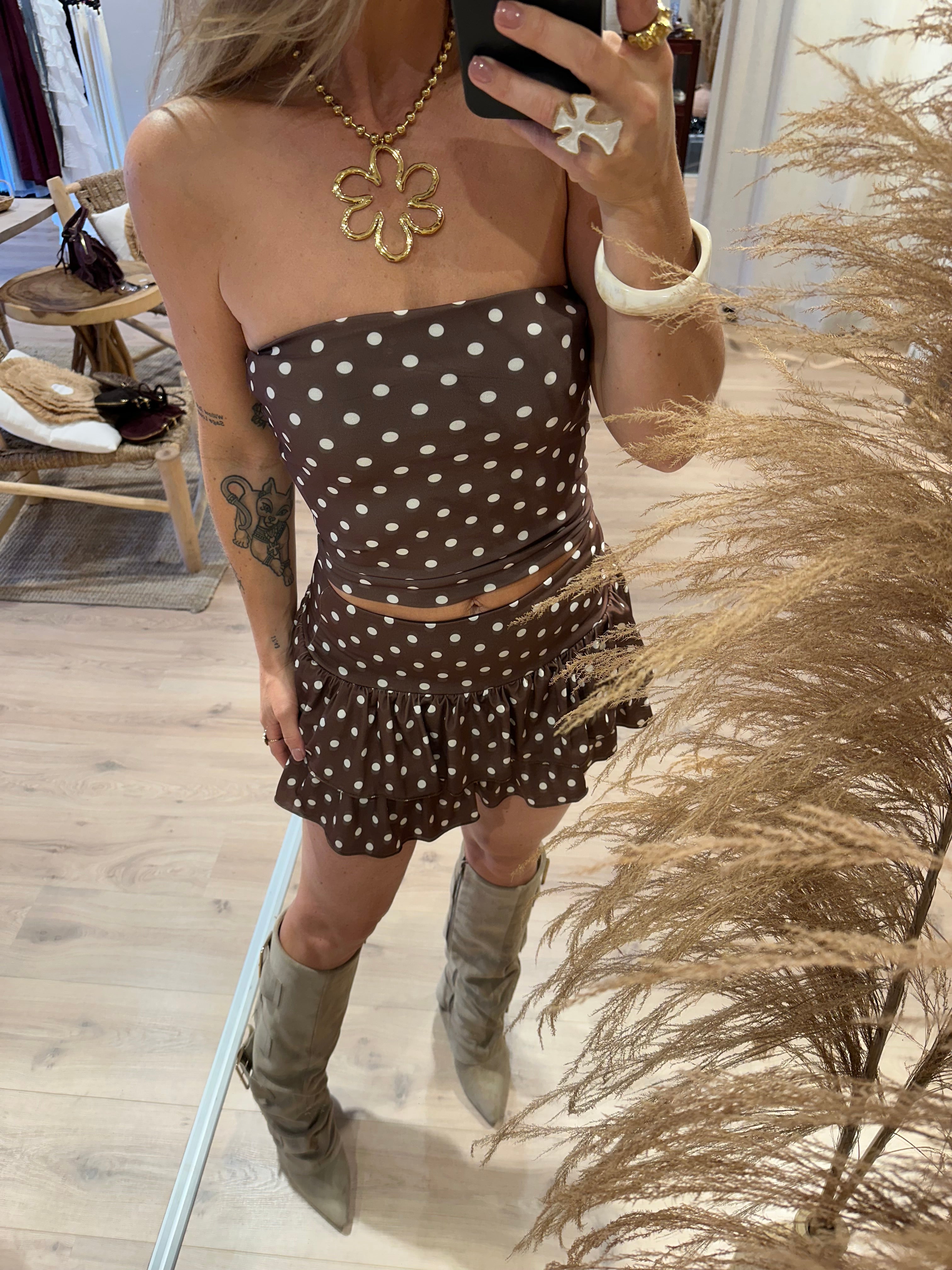 Sisters Point geplooide mini rok met print bruin | NOPE-SK4