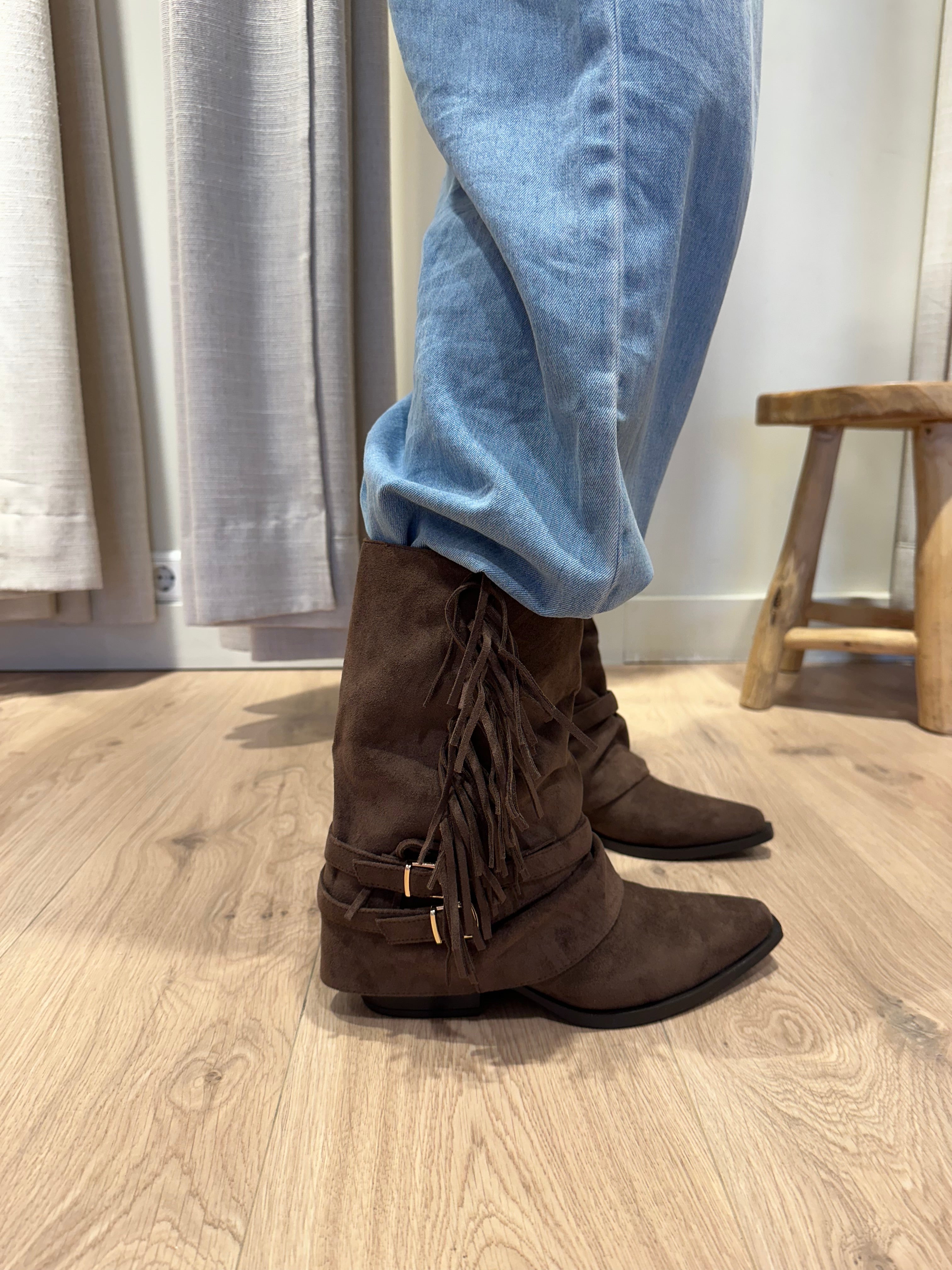 Midden hoge laarzen met franje bruin | Leila