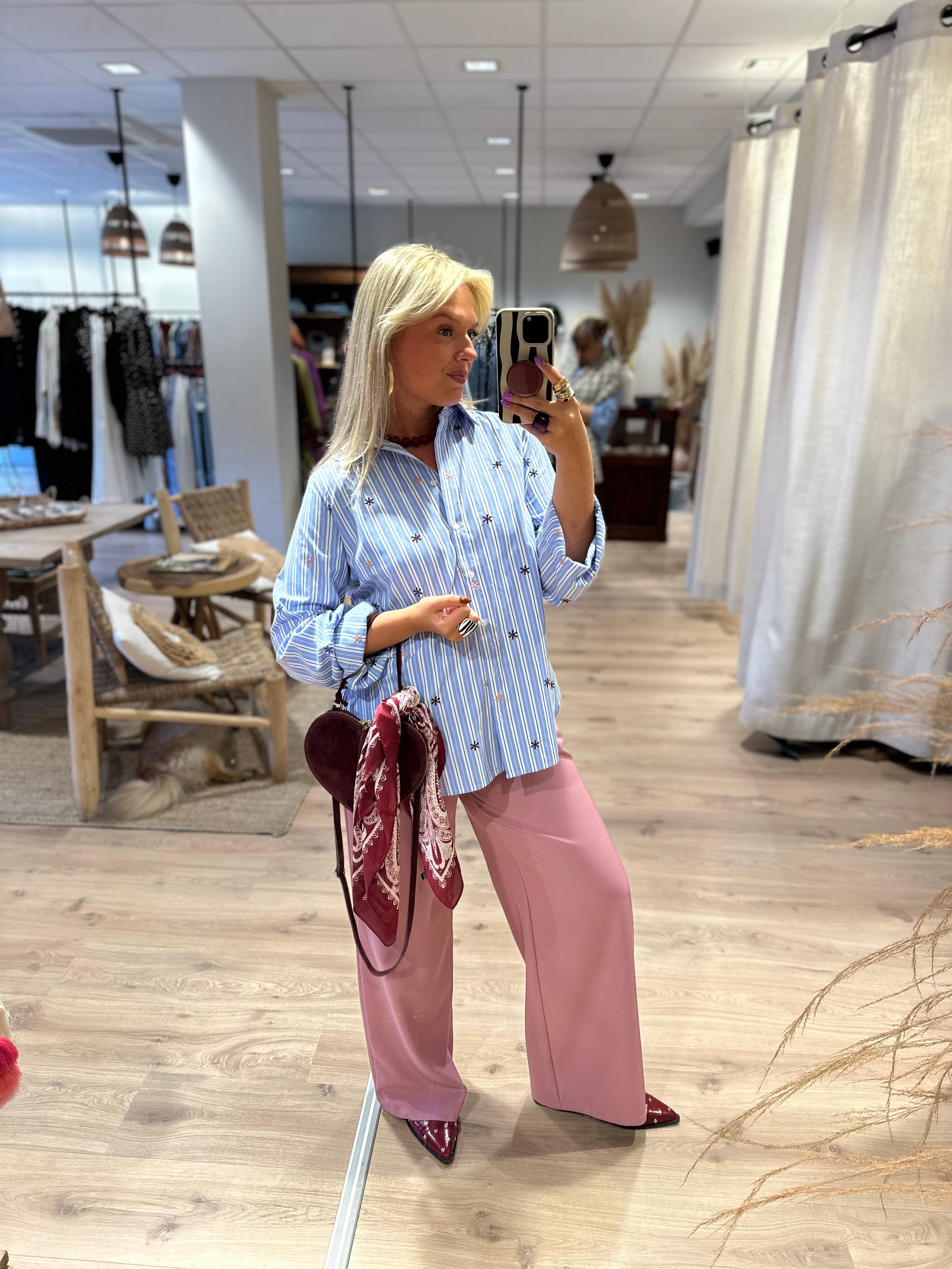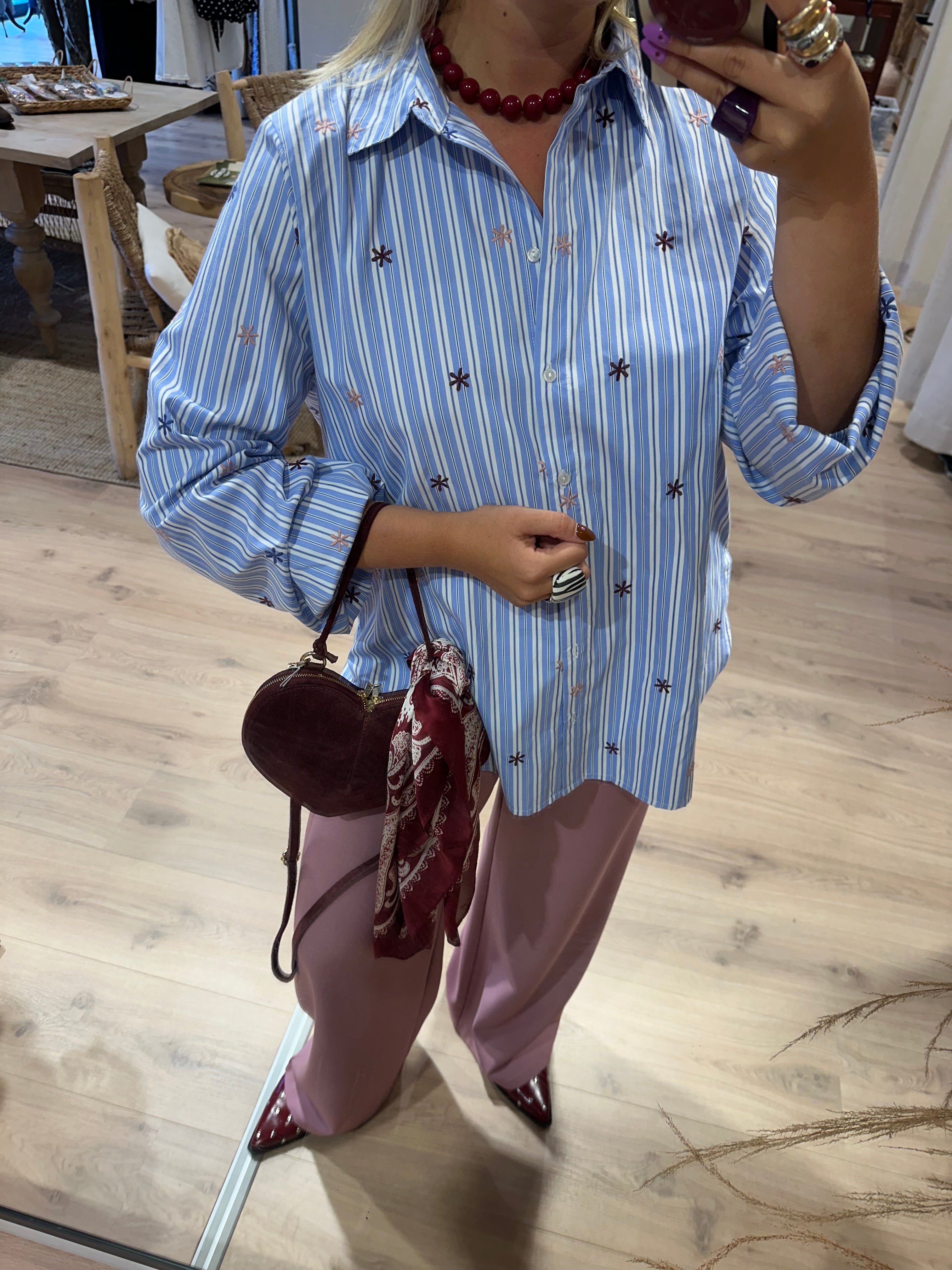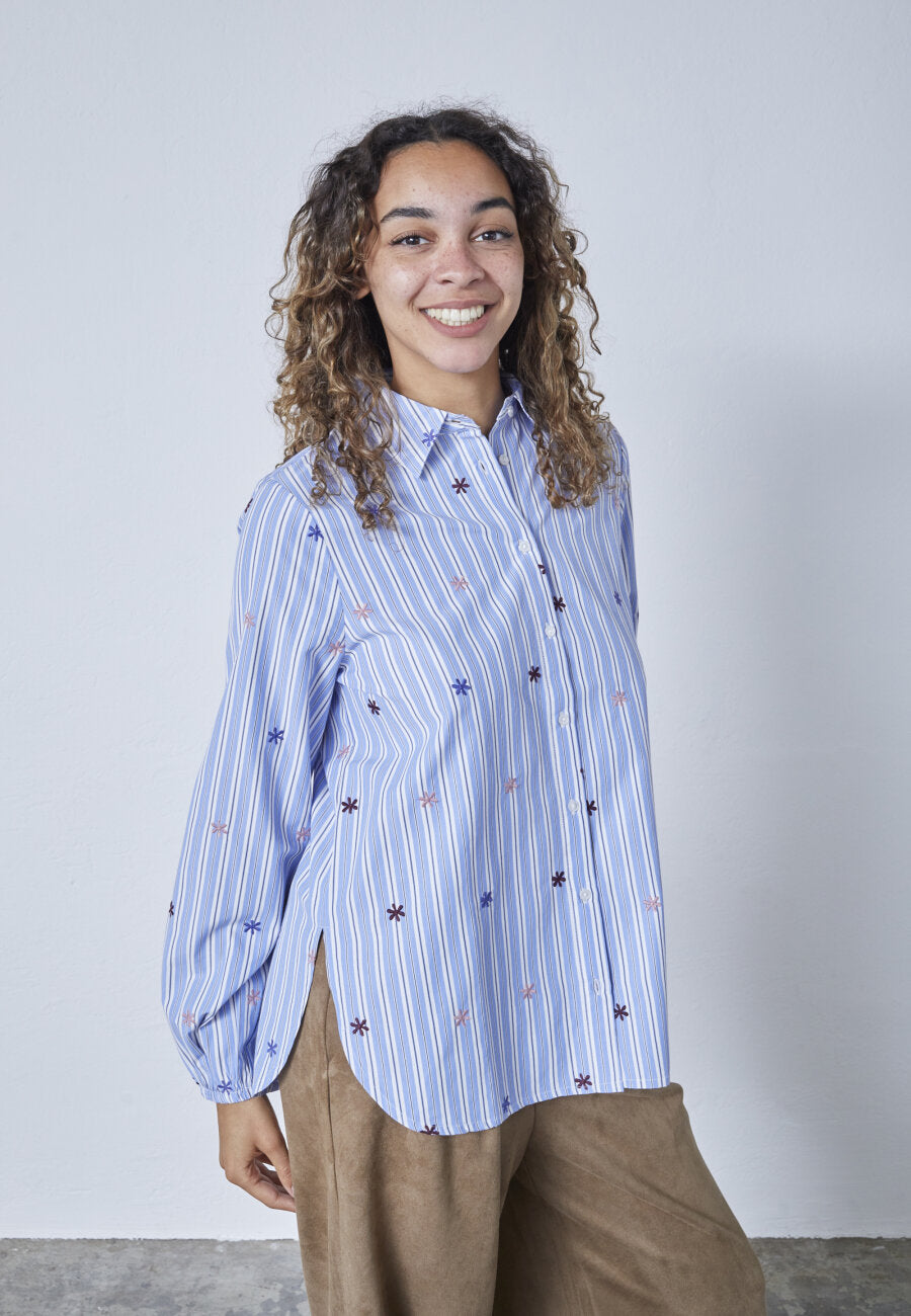 Sisters Point blouse met borduursels blauw | ISTEA-SH2