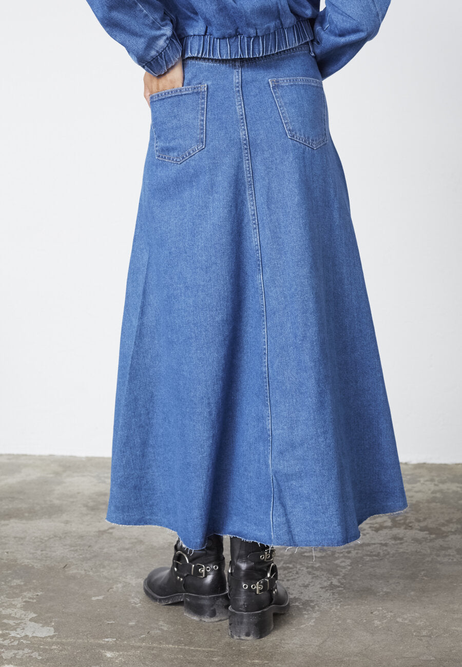Sisters Point denim maxi rok blauw | OSLA-SK1