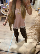 Sisters Point satijnen top met kant roze | ISOLDE-ST