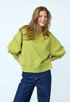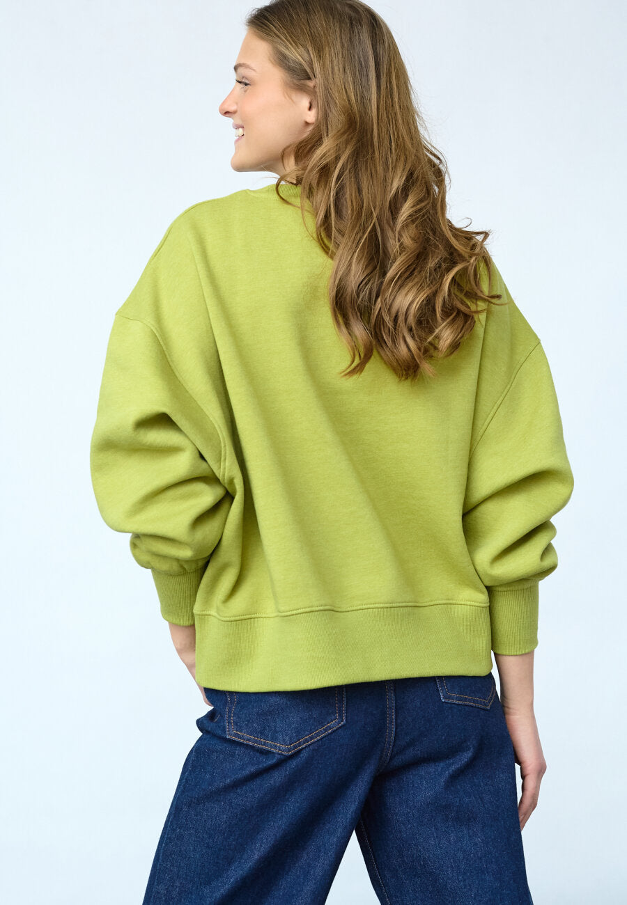 HIKE-SW is een effen kleurige, eenvoudige trui met een kleine tekstdetail aan de voorkant en luchtige mouwen. De trui heeft een brede geribbelde rand aan de taille en polsen.