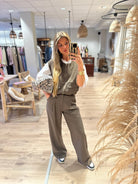 GREAT-PA3 zijn een paar klassieke, loszittende broeken met wijde benen. De broeken hebben een normale pasvorm bij de taille.