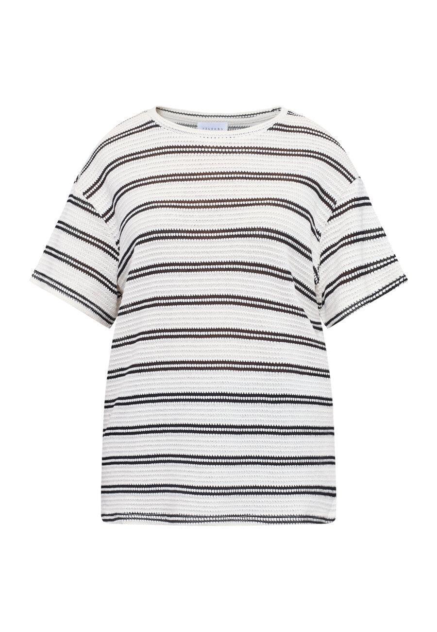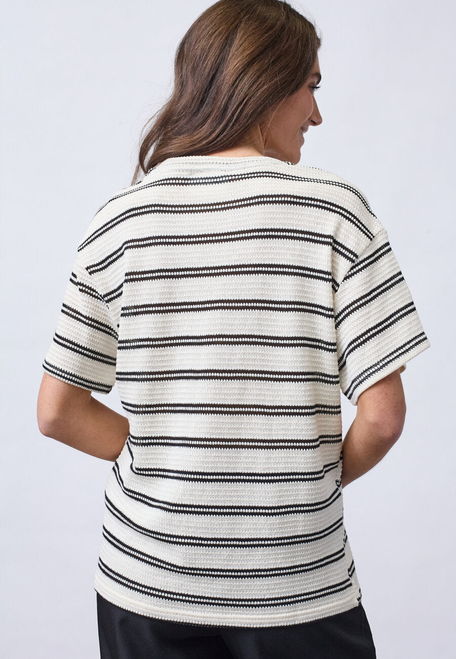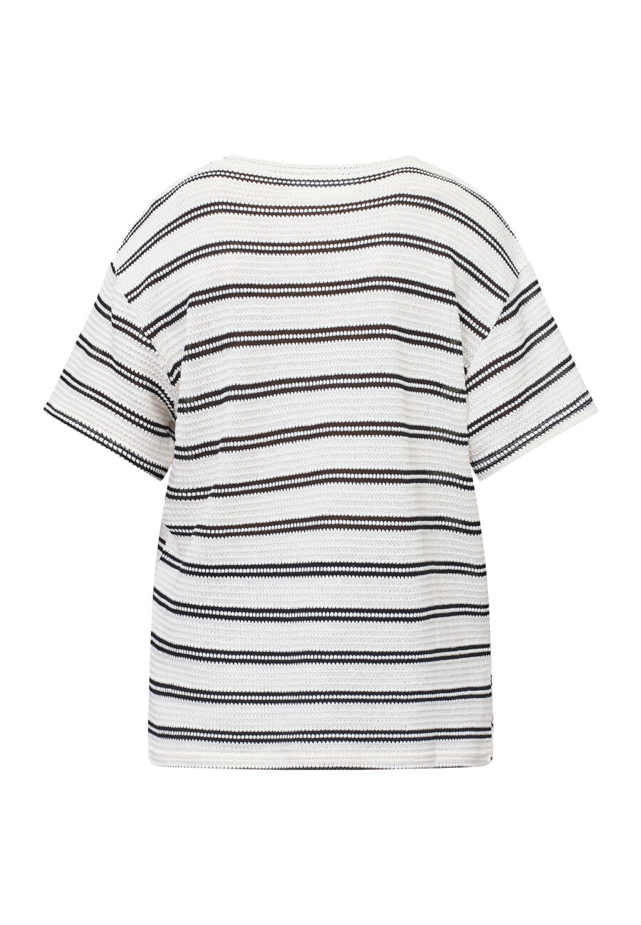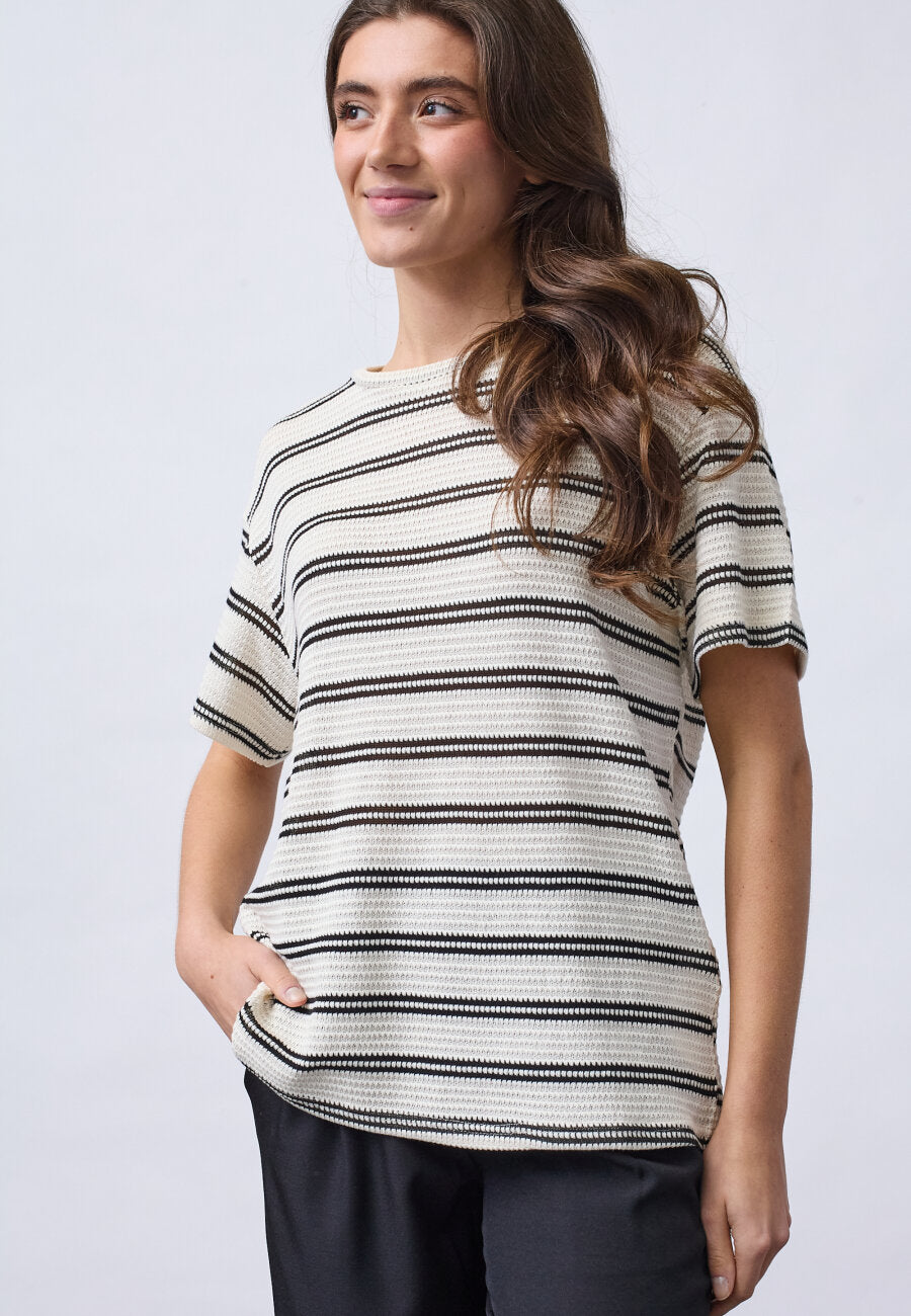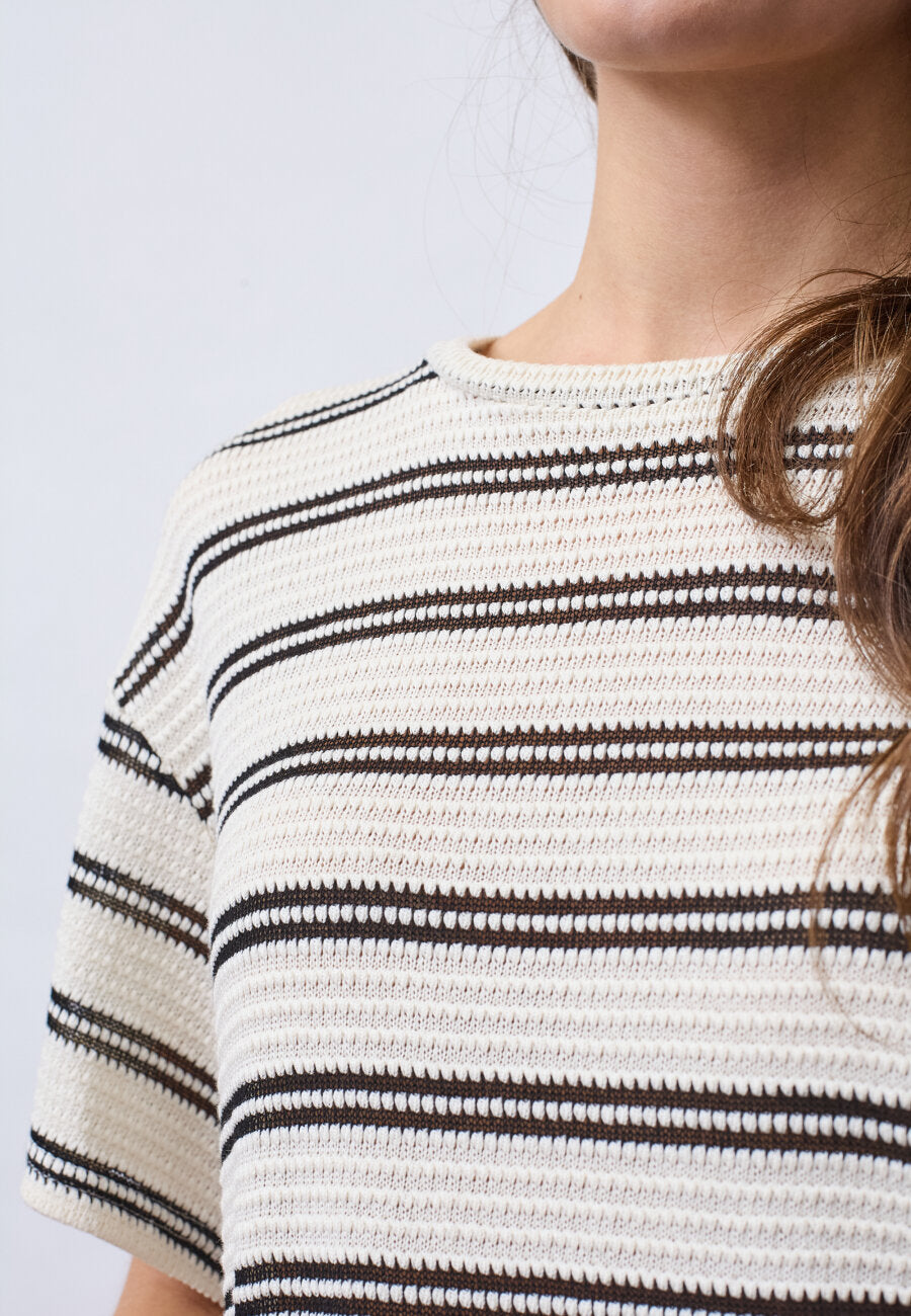 Sisters Pont gehaakt t-shirt met strepen crème/zwart | VEDA-SS1