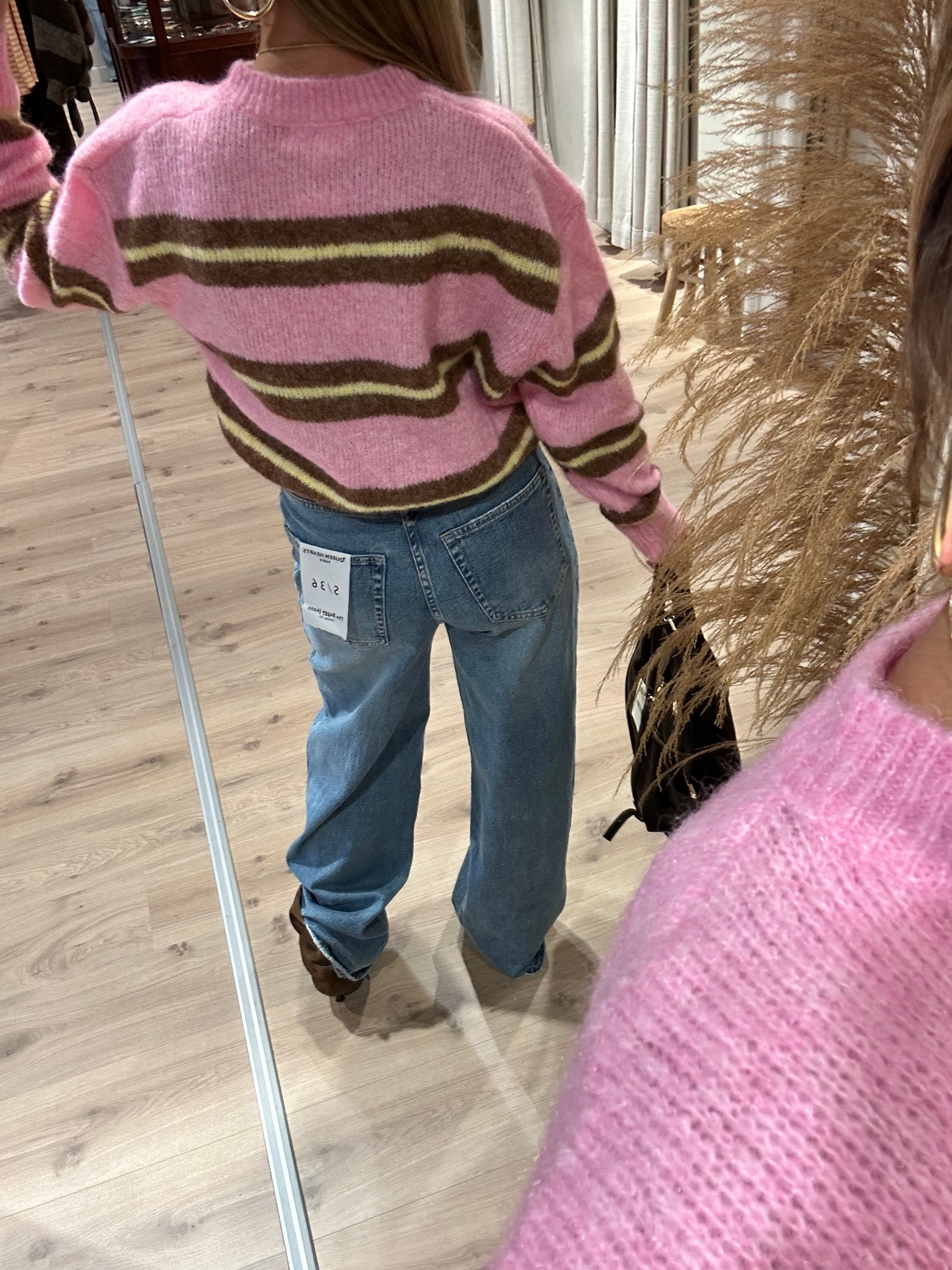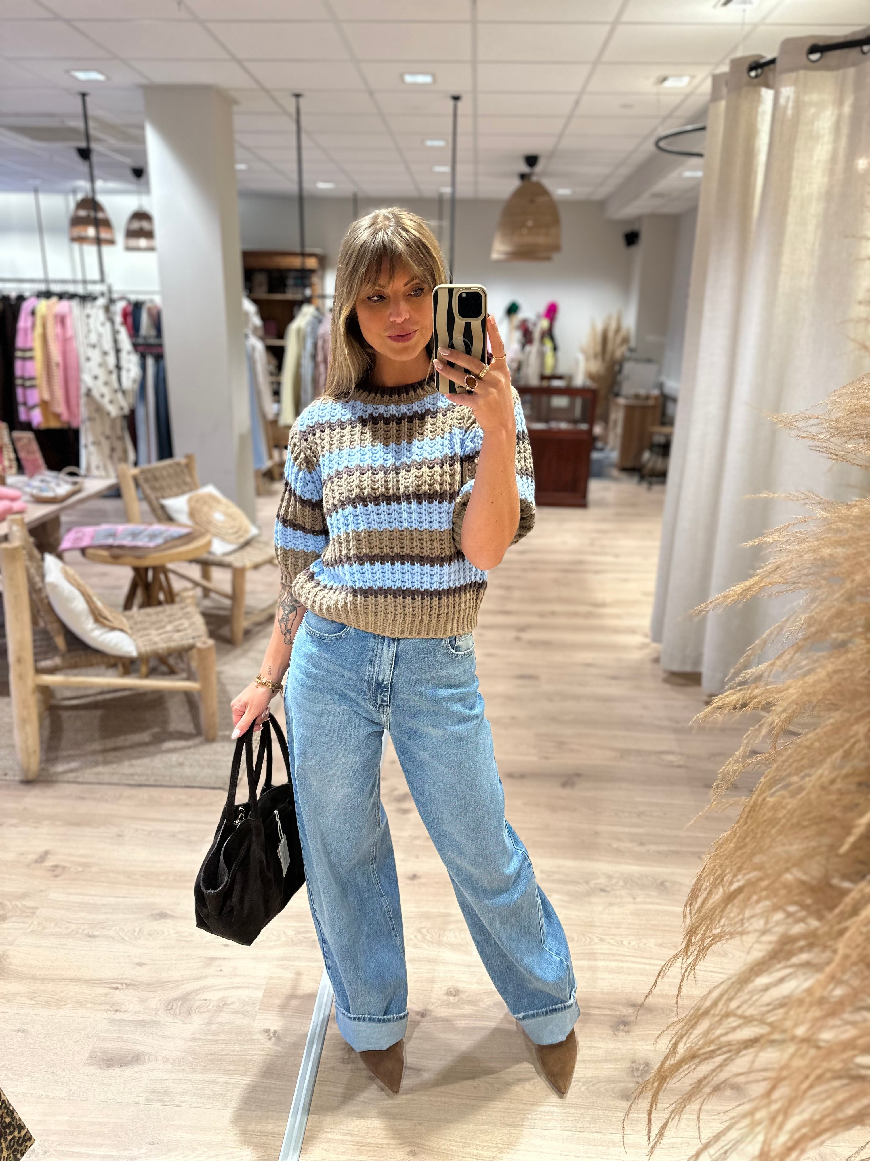 Gebreid vest met strepen en sjaal bruin/blauw | Noor