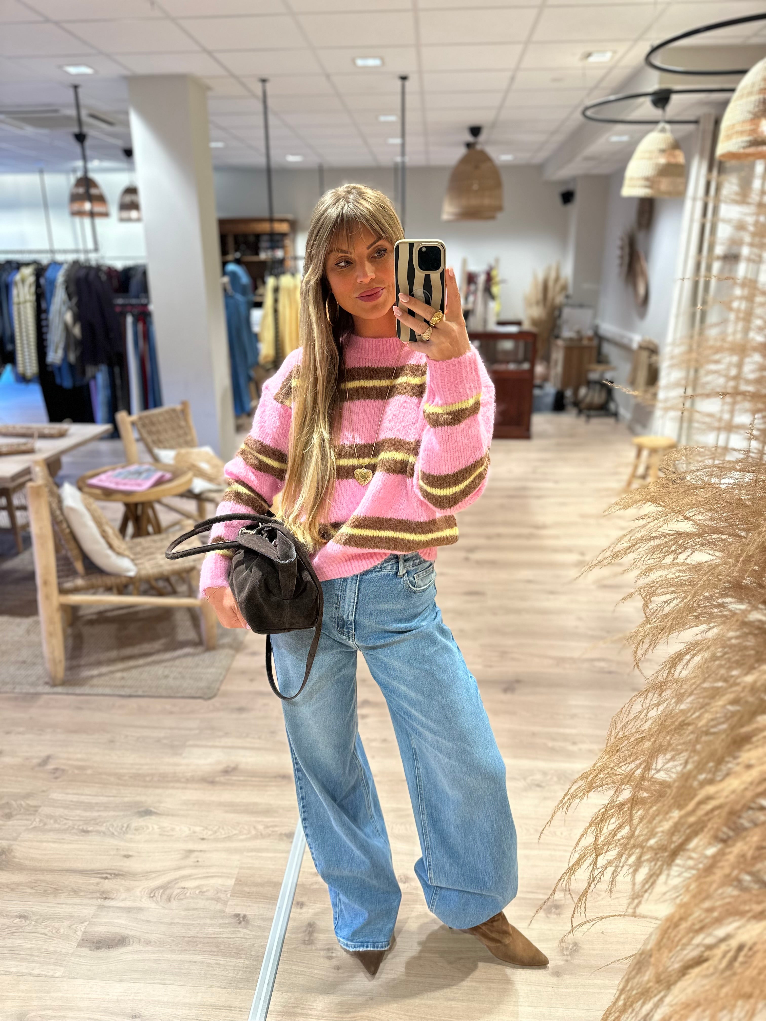 Gebreid vest met strepen en sjaal bruin/taupe | Noor