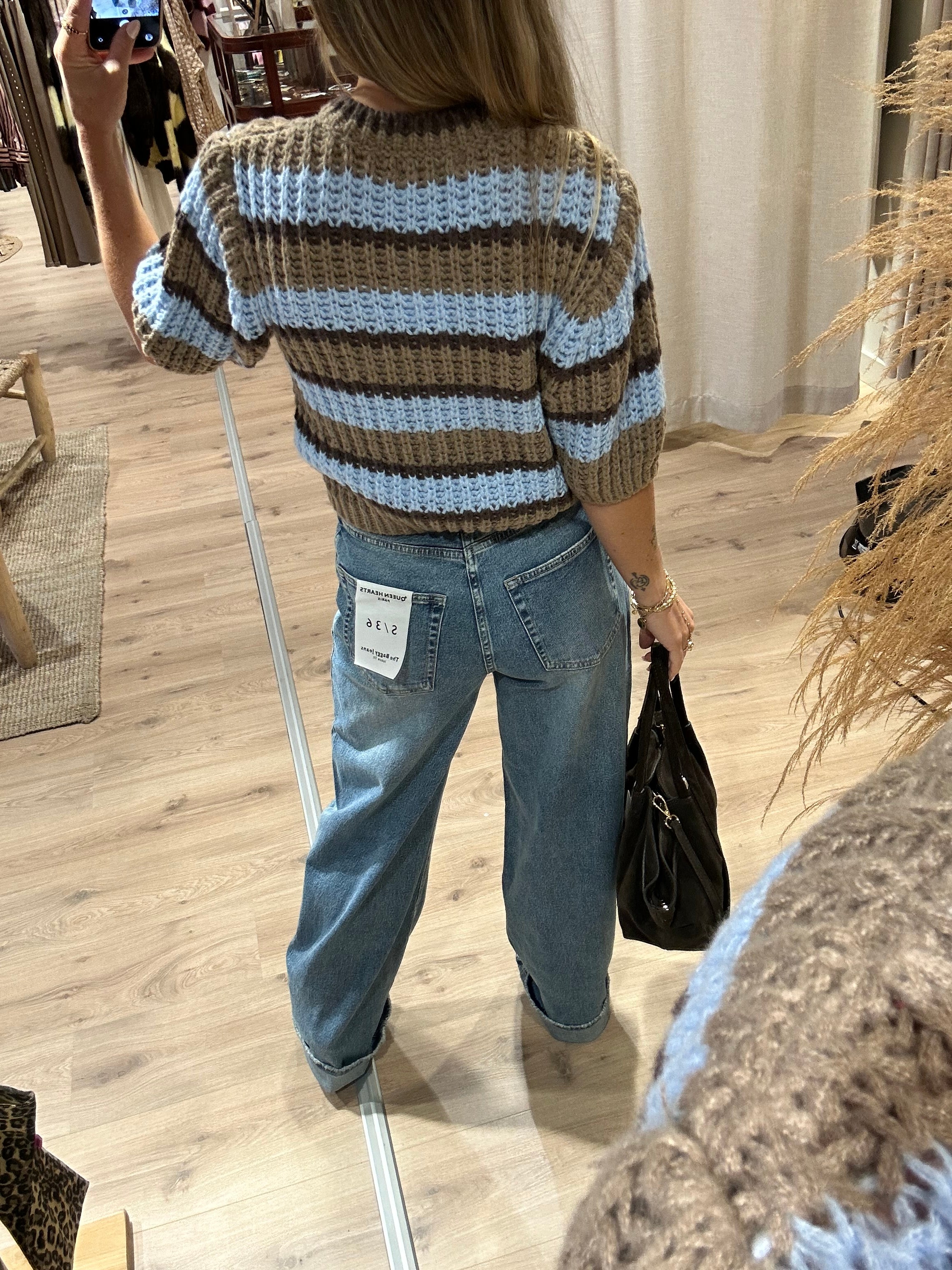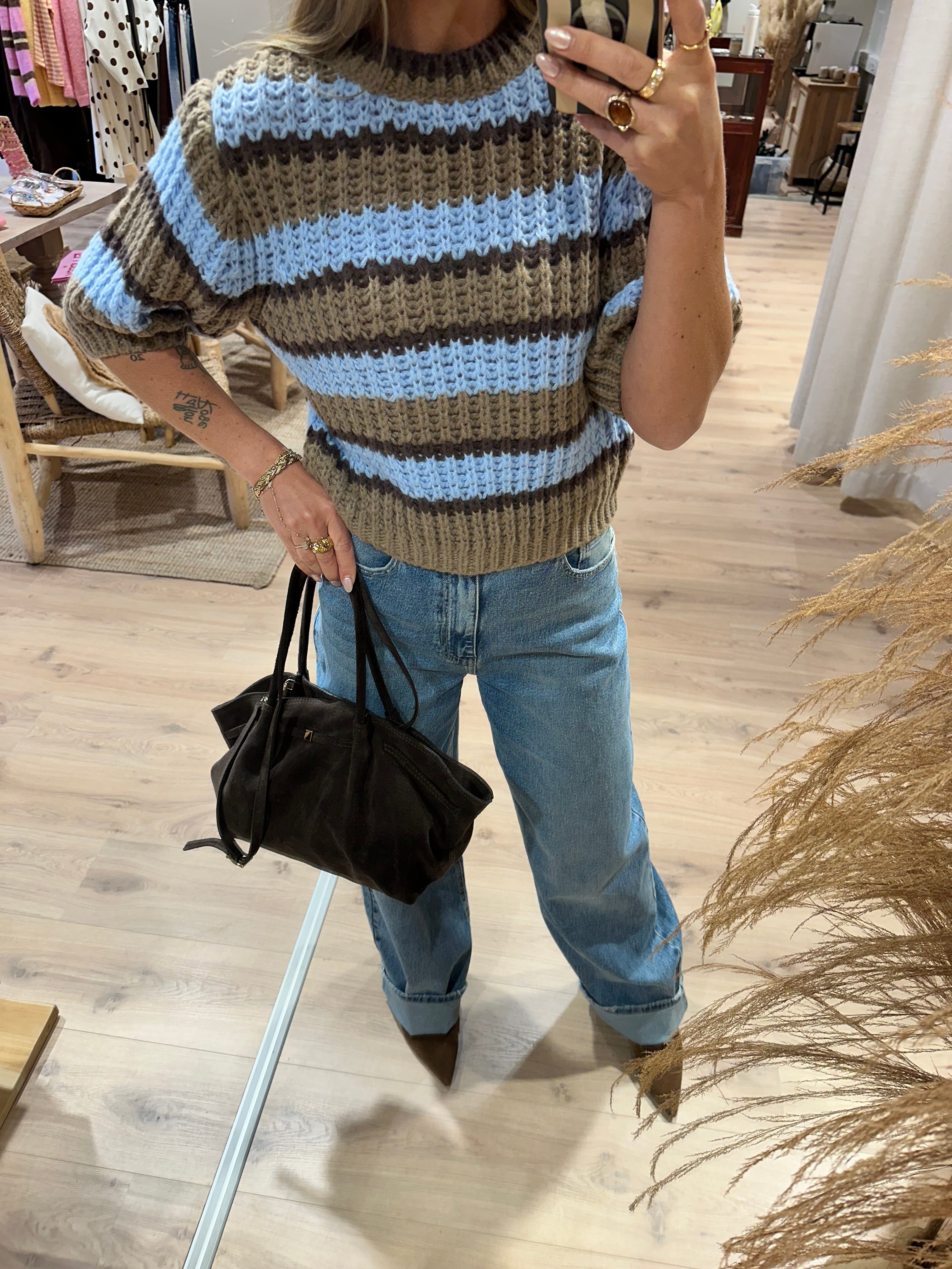 Sisters Point gebreide trui met korte mouwen blauw | KRISSY-PU