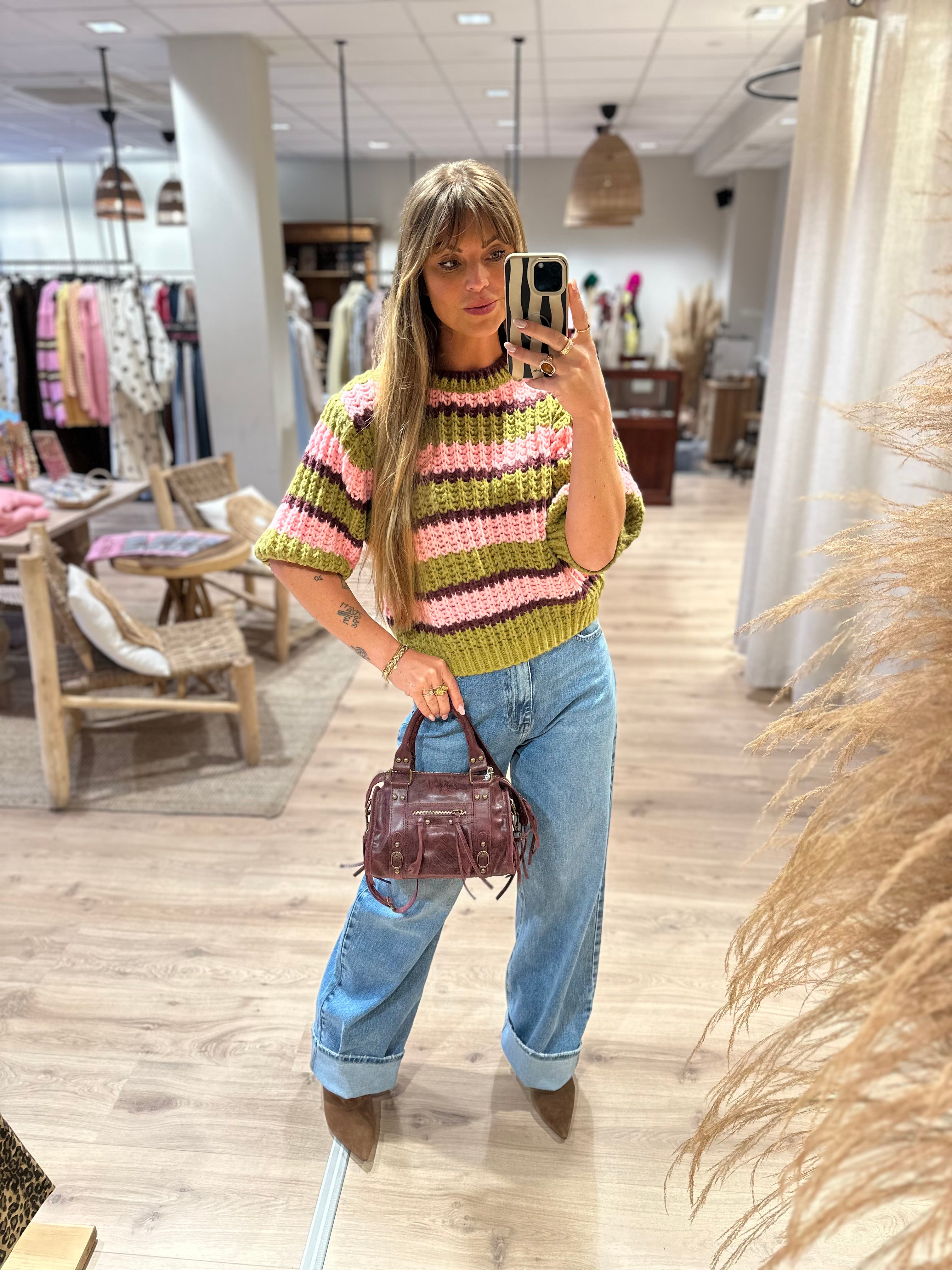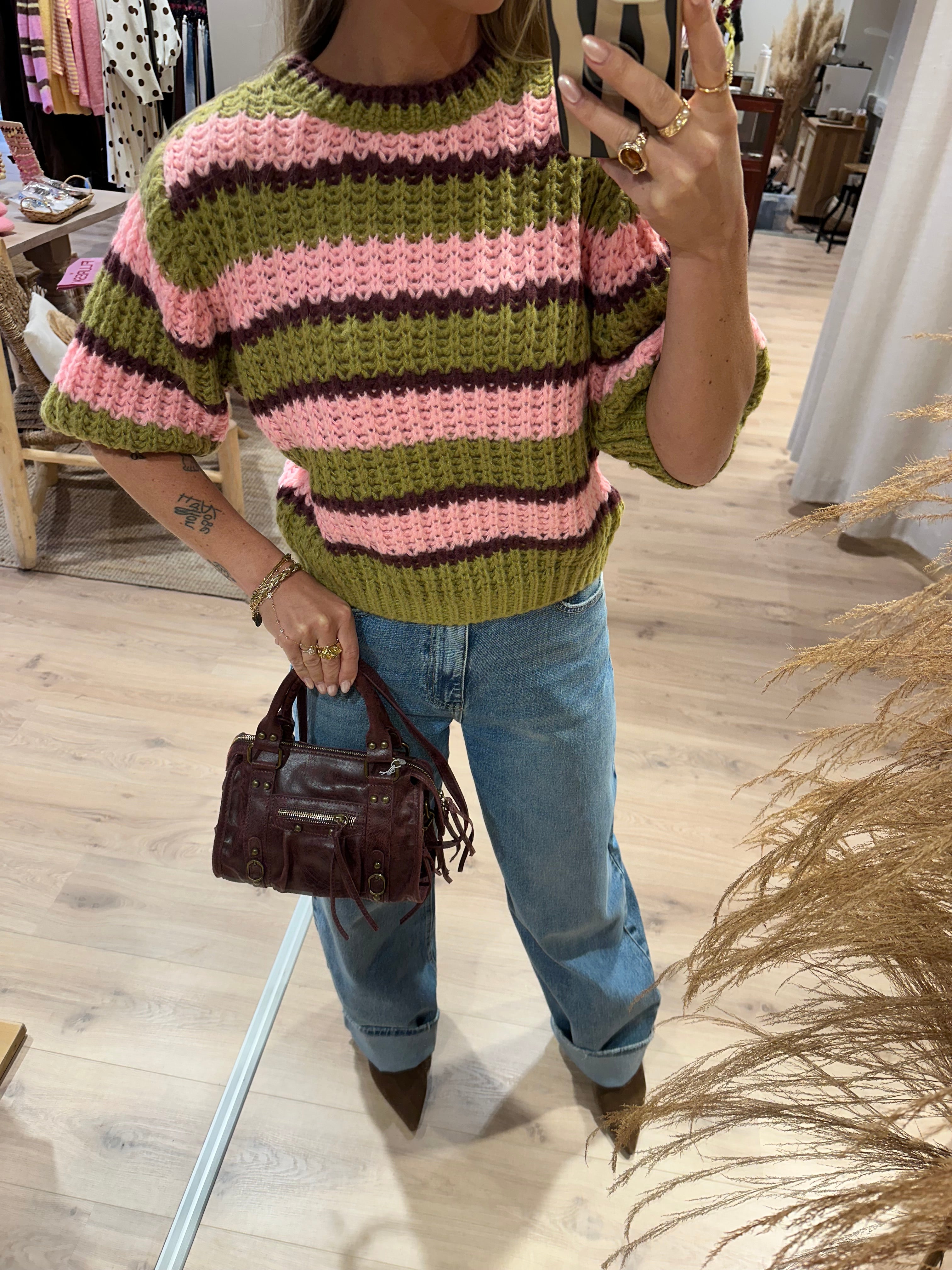 Sisters Point gebreide trui met korte mouwen groen | KRISSY-PU