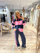 Glitter & glam maar dan comfy! De SELERA KNIT SWEATER is een echte eyecatcher met zijn opvallende colorblock strepen en subtiele pailletten. De zachte knit geeft ‘m een cosy feel, terwijl het statement design ‘m party proof maakt.