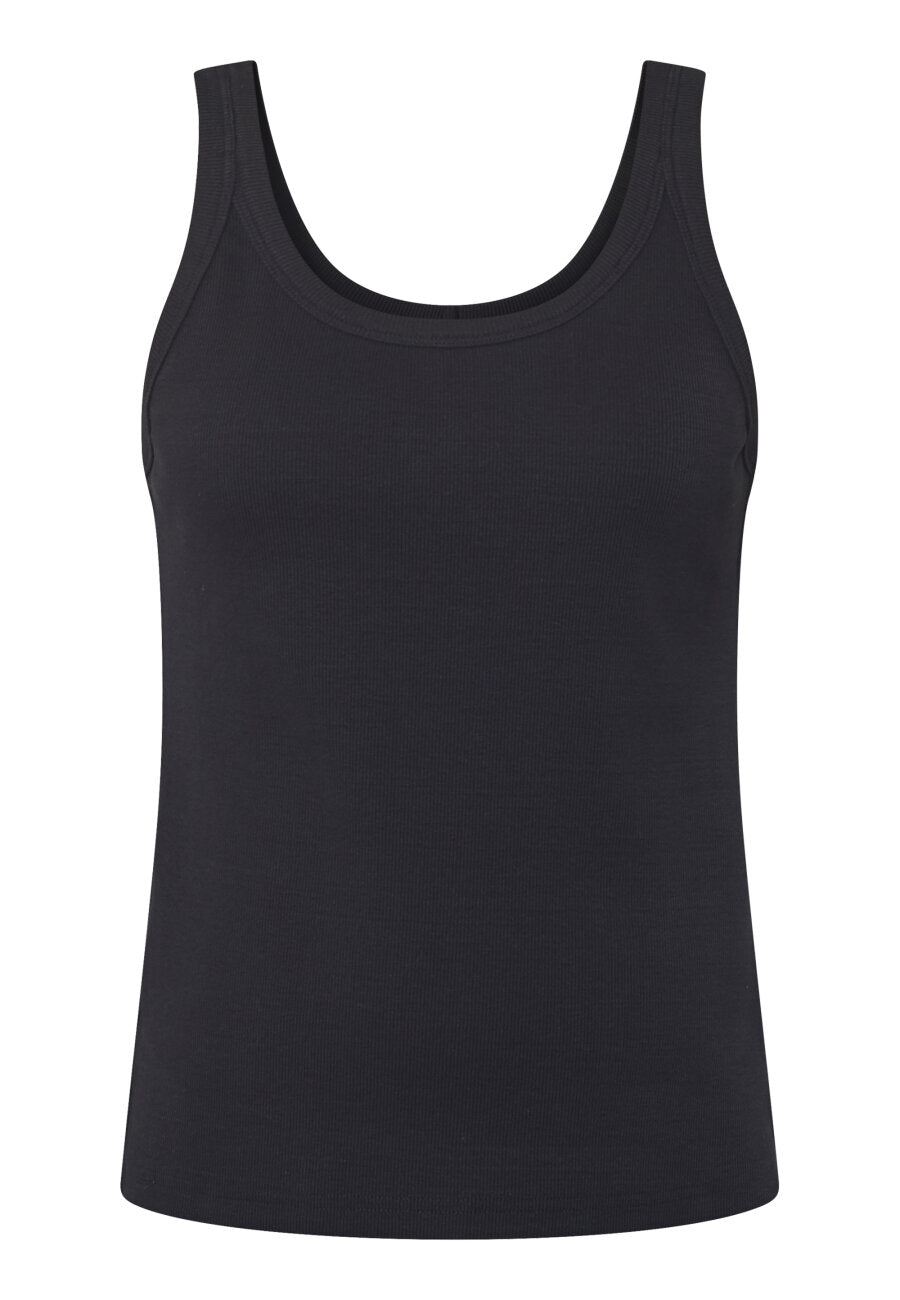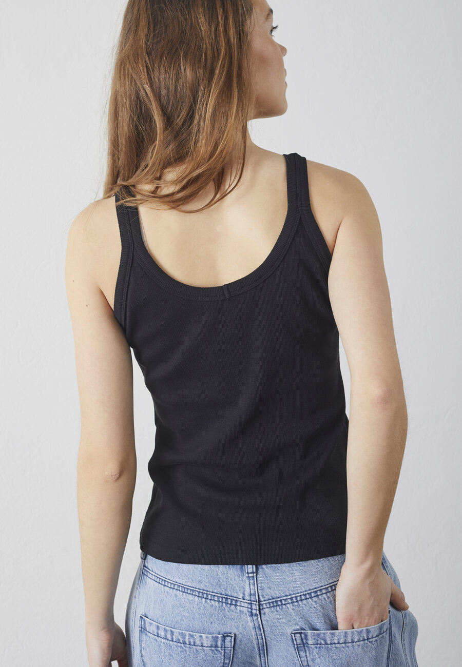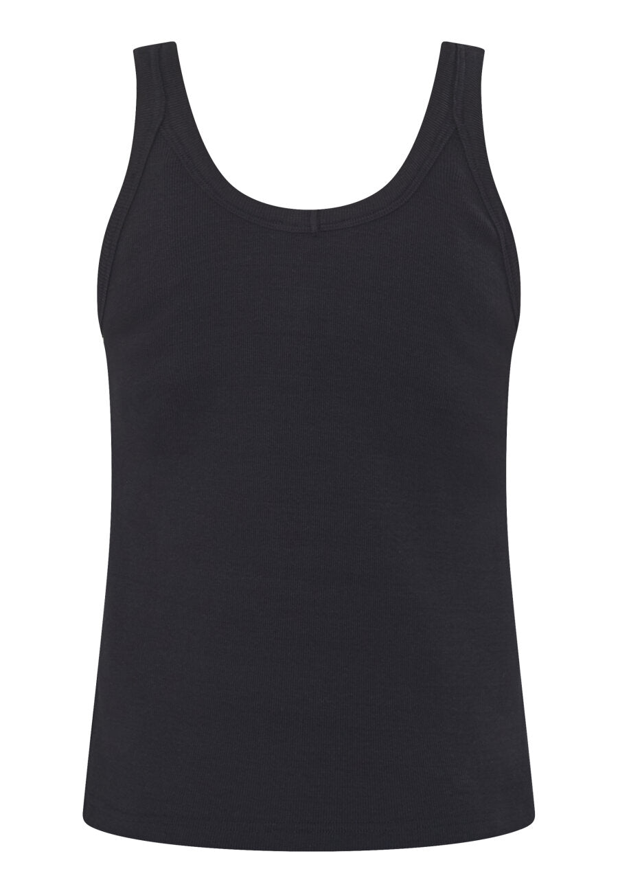 EIKE-ST is een geribbelde tanktop met een diepe ronde hals en brede schouders. De top heeft een aansluitende pasvorm en is gemaakt van rekbaar materiaal. Het heeft een rechte rand aan de onderkant.