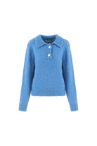 De ZORINA KNIT SWEATER is gemaakt om in te wonen. De fluffy stof, speelse polokraag en hartvormige knoopjes maken haar super cute en draagbaar. Combineer met een jeans voor een cozy look met flair – of trek ‘m over een rok voor een preppy twist.