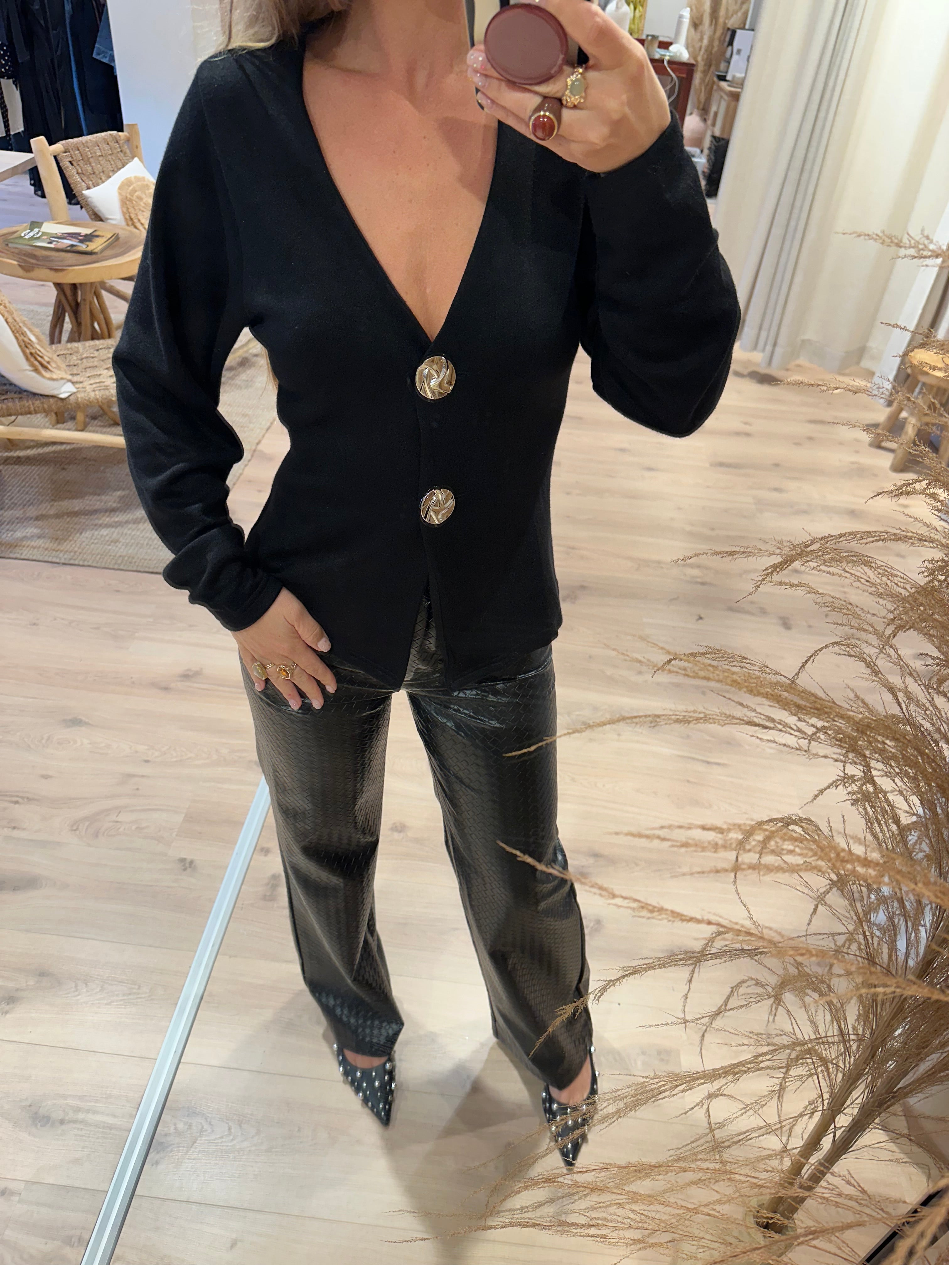 Broek met coating en gevlochten effect zwart | Lisa